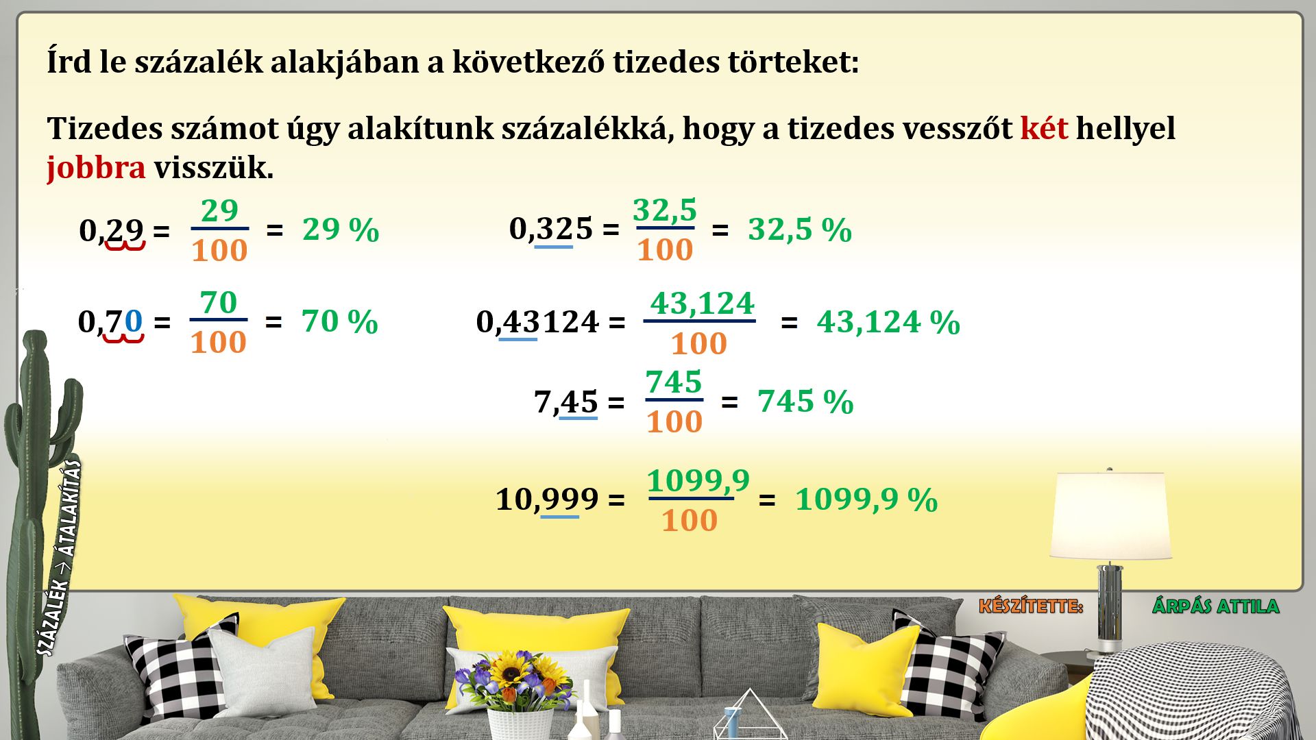 Ebben a leckében tizedes törtet alakítunk át százalékká.