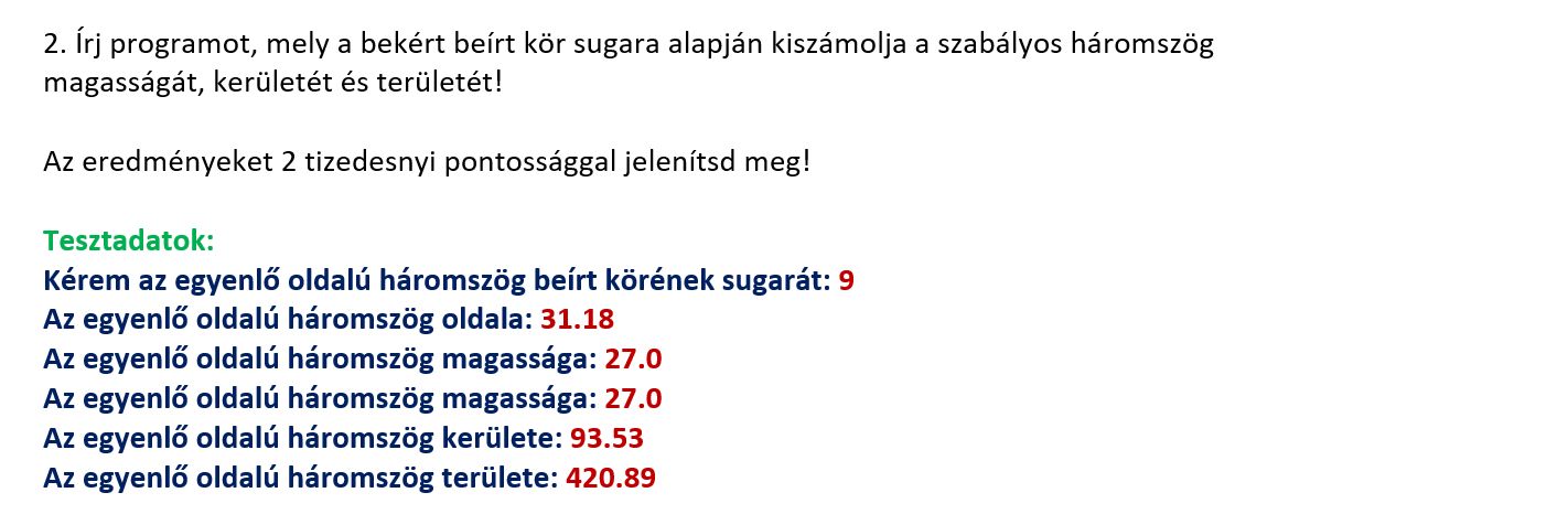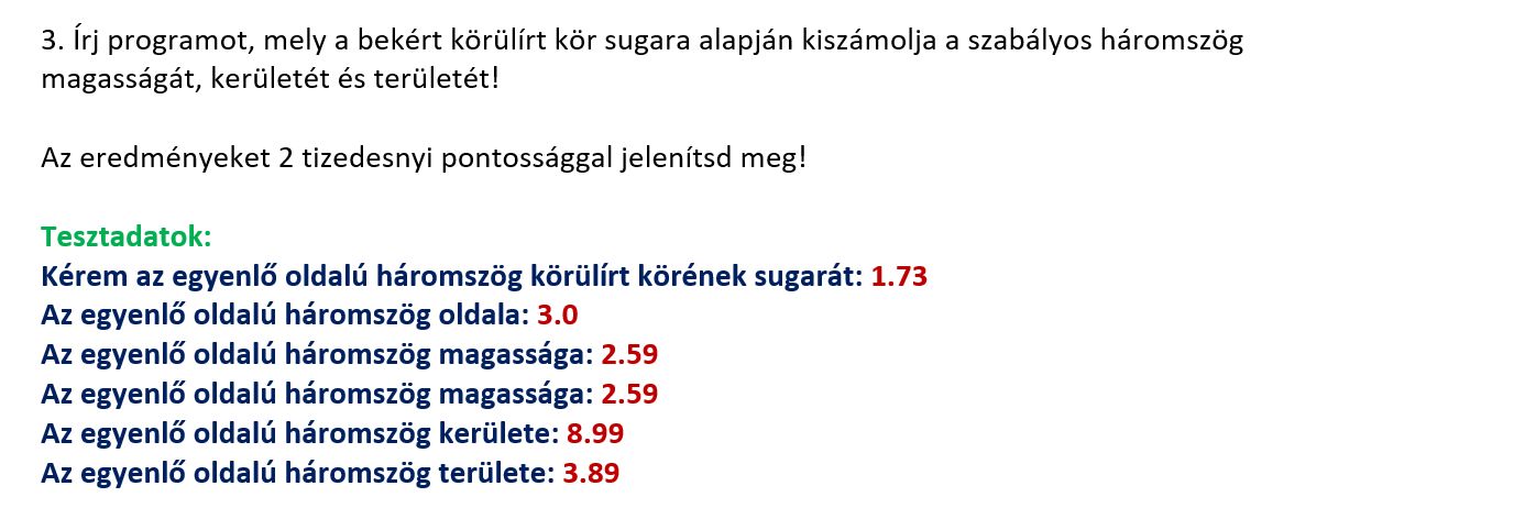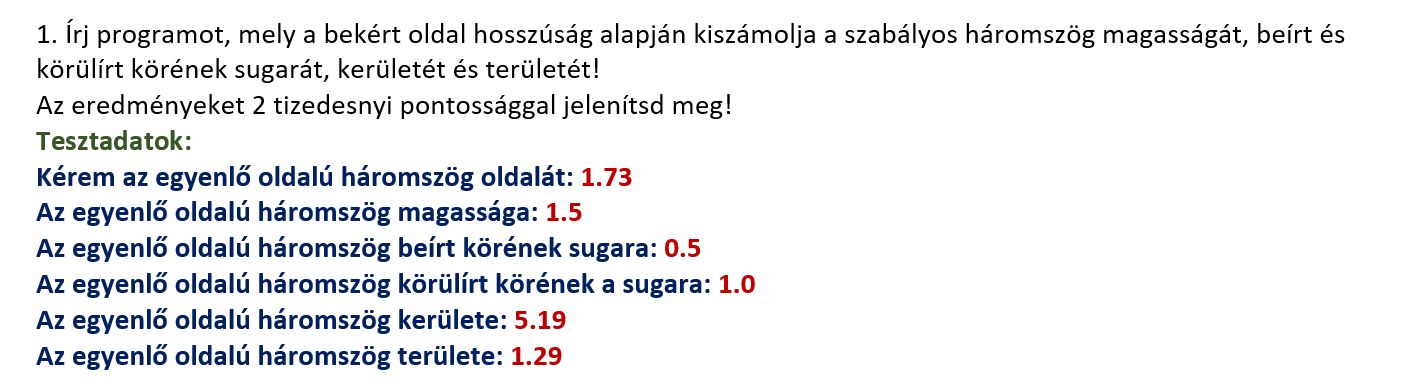 Ebben a leckében a szabályos háromszög elemeit (magasságát, beírt és körülírt körének sugarát, kerületét és területét) számoljuk egy python program segítségével.