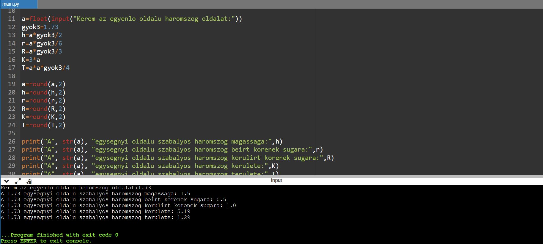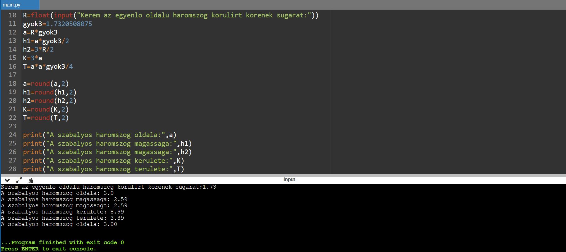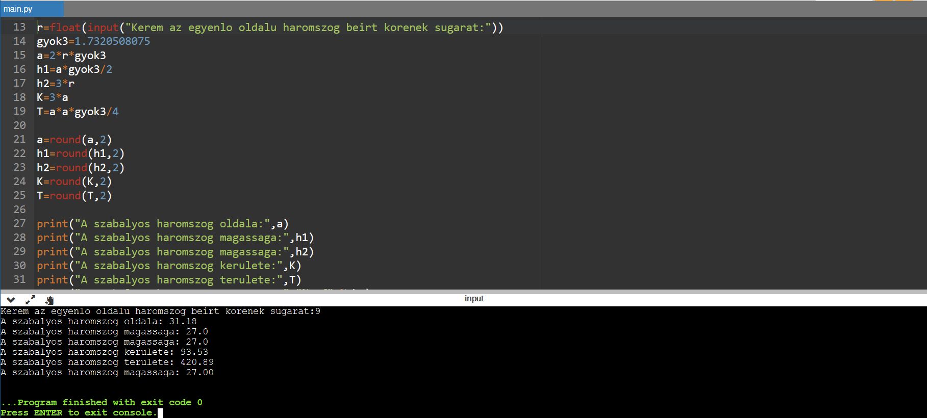 SZABÁLYOS HÁROMSZÖG KERÜLETE ÉS TERÜLETE (PYTHON PROGRAM SEGÍTSÉGÉVEL)