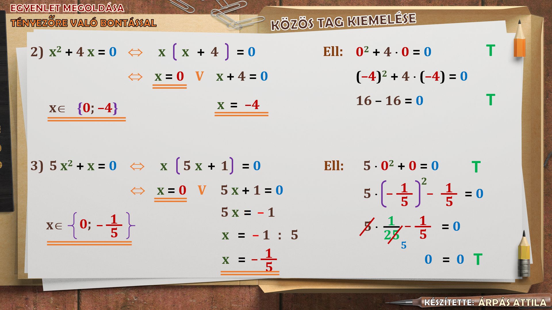 1) EGYENLET MEGOLDÁSA TÉNYEZŐRE VALÓ BONTÁS ALKALMAZÁSÁVAL – KÖZÖS TAG KIEMELÉSE