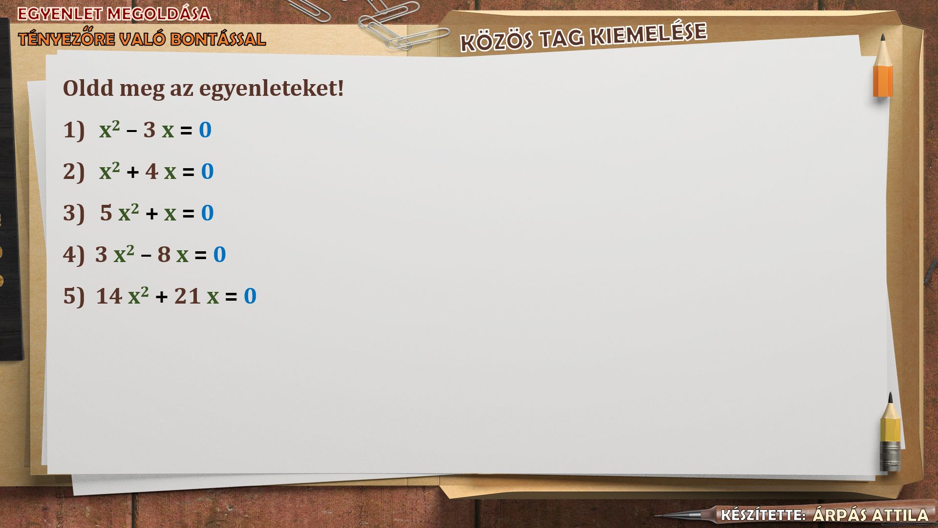 Mai leckénkben egyenleteket oldunk meg tényezőre való bontás (közös tag kiemelése) alkalmazásával.