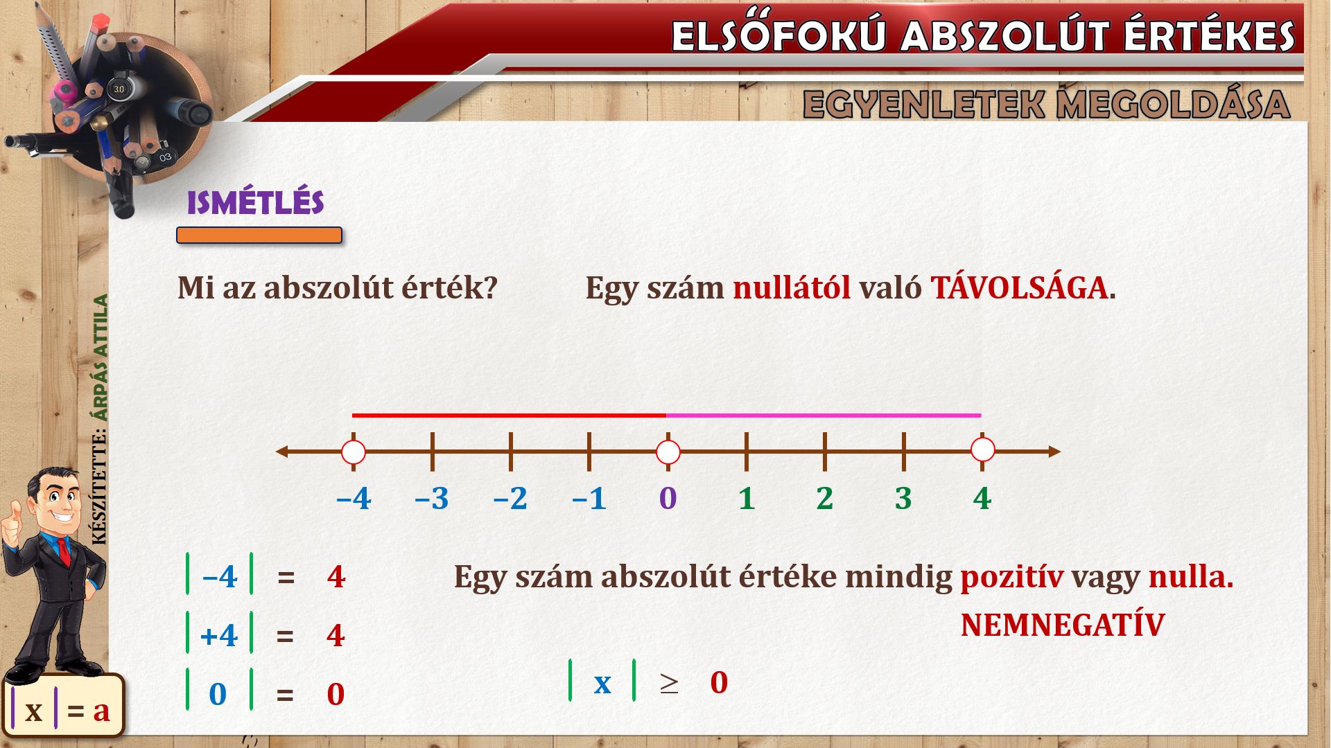 Sorozatunk bevezető részében először is megismerkedünk, vagy ha már ismerjük, átismételjük az abszolút érték fogalmát, jellegzetes tulajdonságait, az alap egyenlet megoldását, megoldások számát.