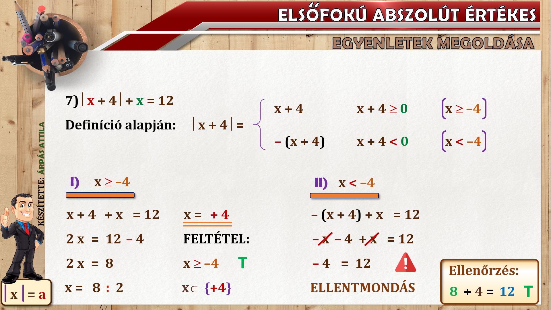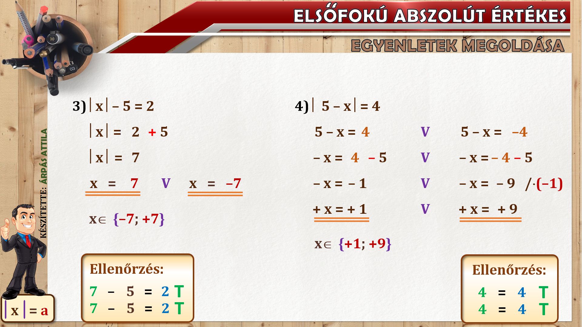 Mai leckénben olyan elsőfokú egyenletek oldunk meg, melyben abszolút érték is szerepel.