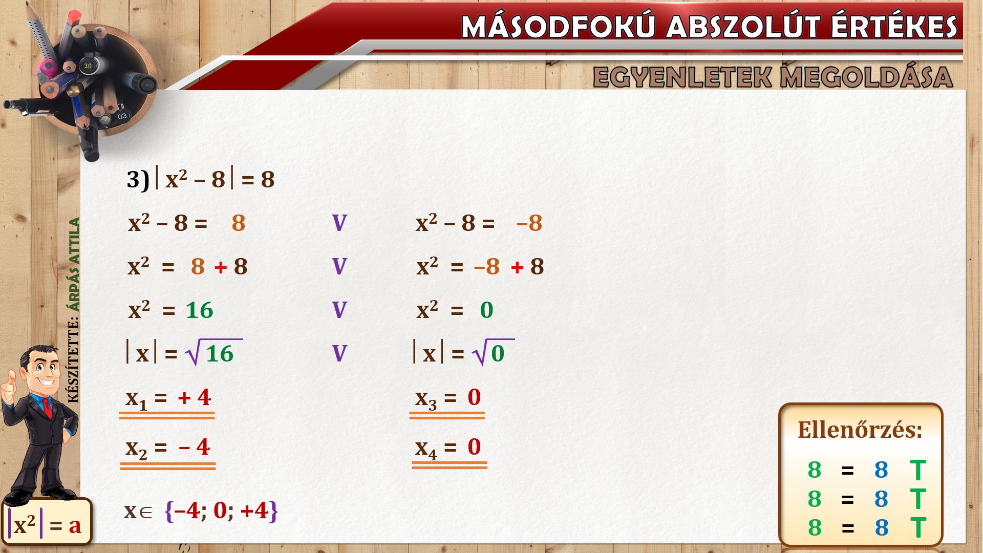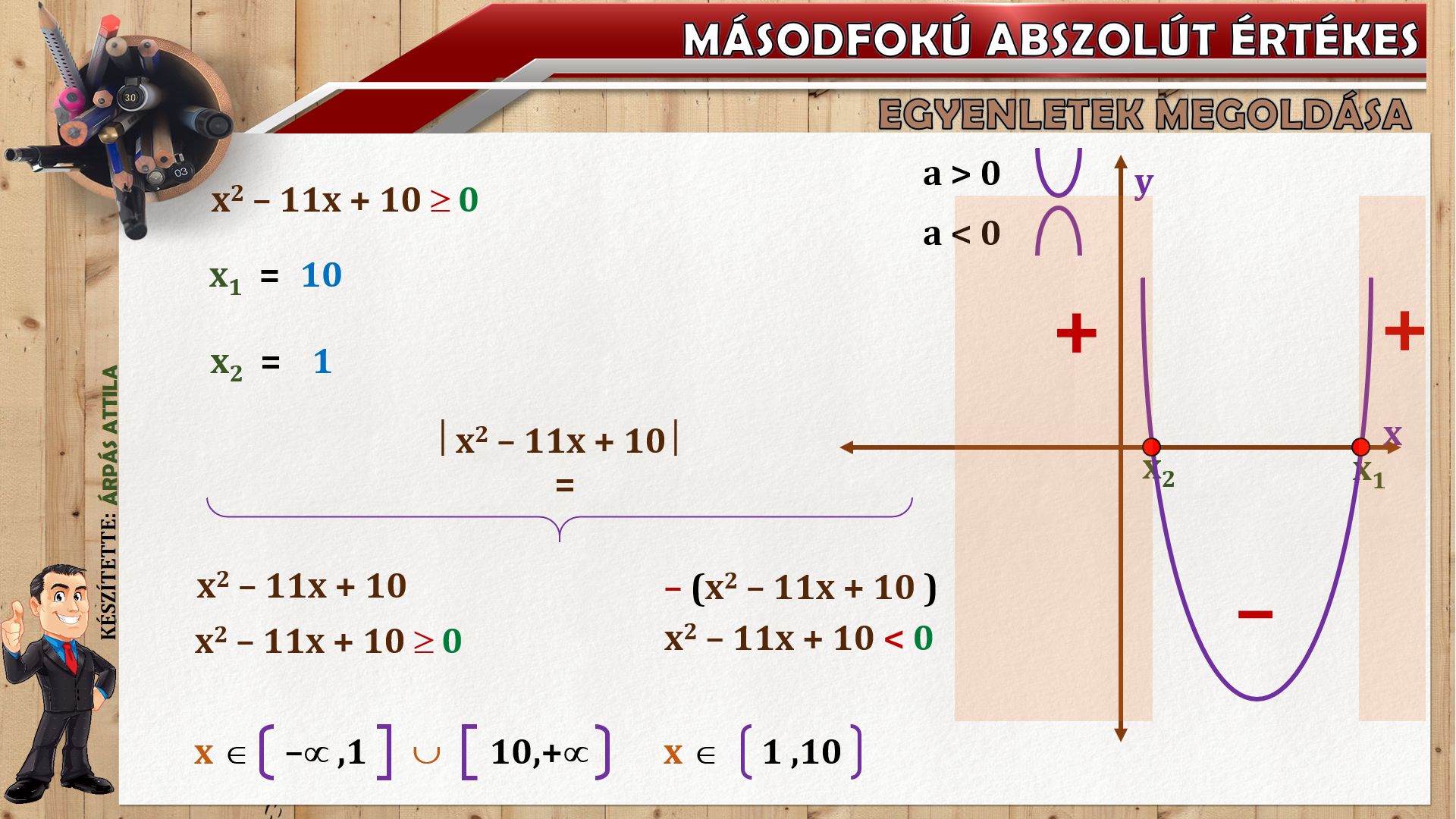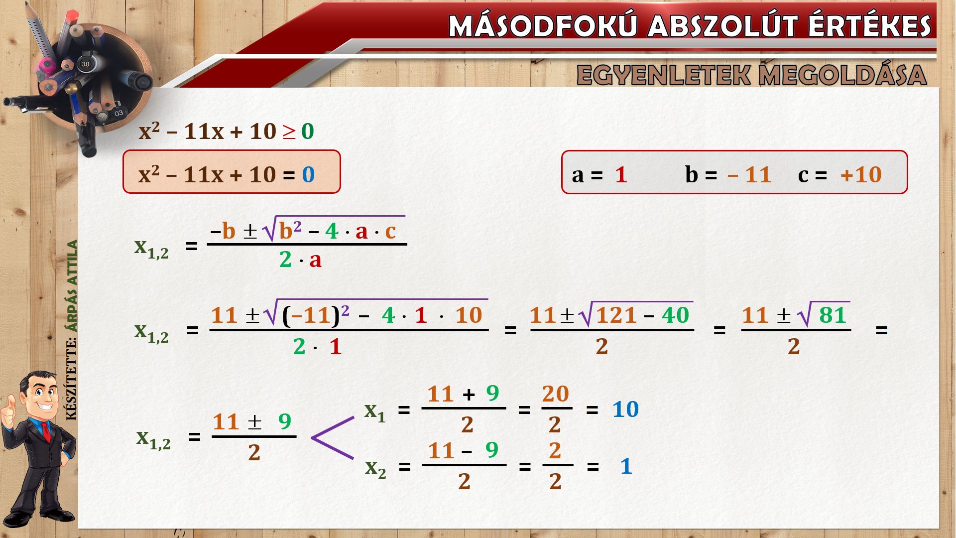 MÁSODFOKÚ ABSZOLÚT ÉRTÉKES EGYENLETEK MEGOLDÁSA 1254