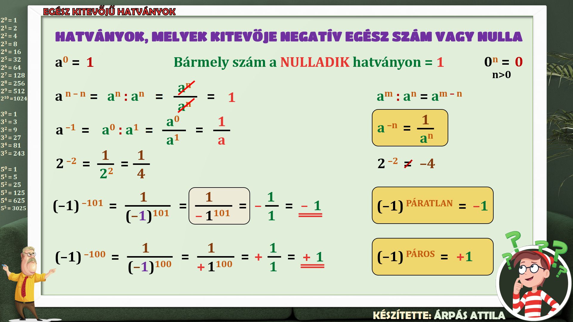 1) NEGATÍV KITEVŐJŰ HATVÁNYOK – 1. FELADATLAP