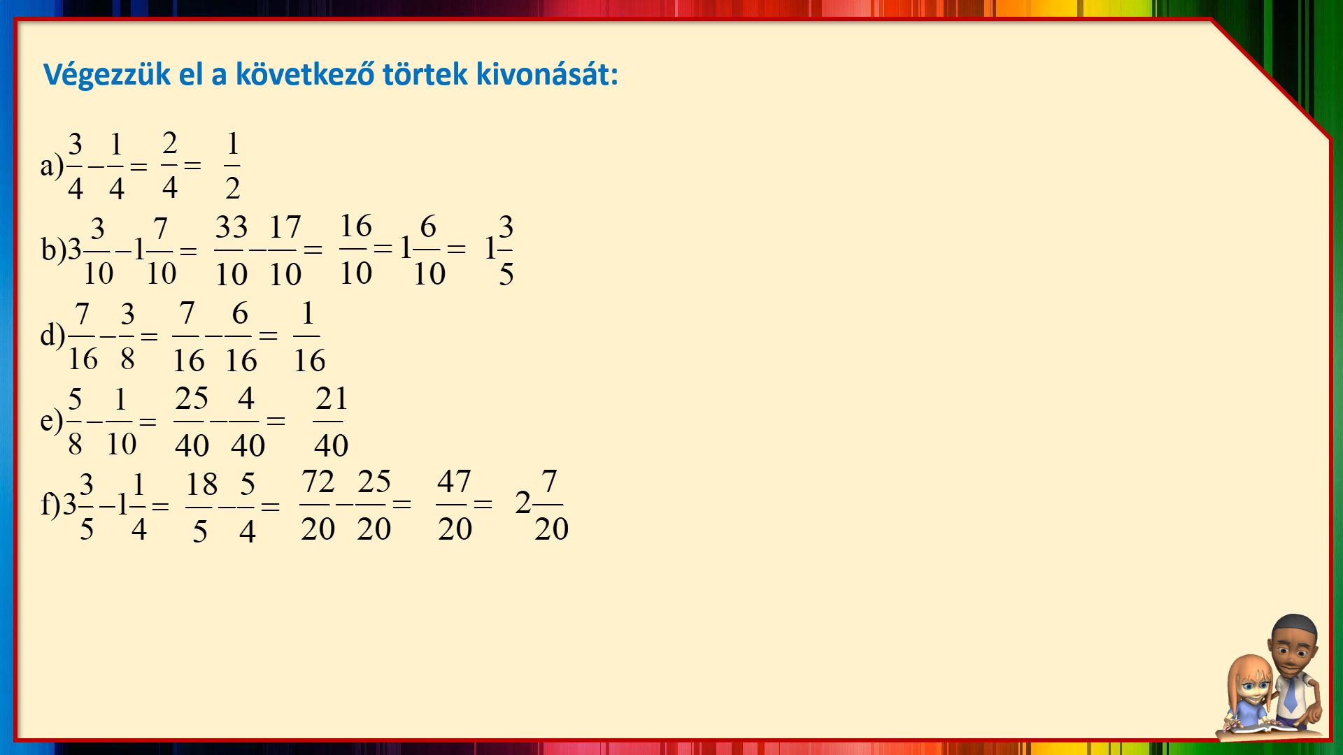 Ebben a leckében átismételjük a törtek összeadását és kivonását a pozitív racionális számok halmazában