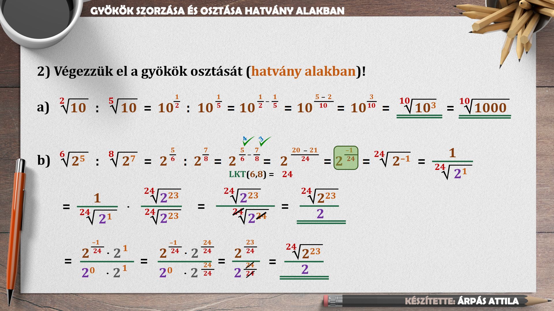 KÜLÖNBÖZŐ KITEVŐJŰ GYÖKÖK SZORZÁSA ÉS OSZTÁSA HATVÁNYKÉNT