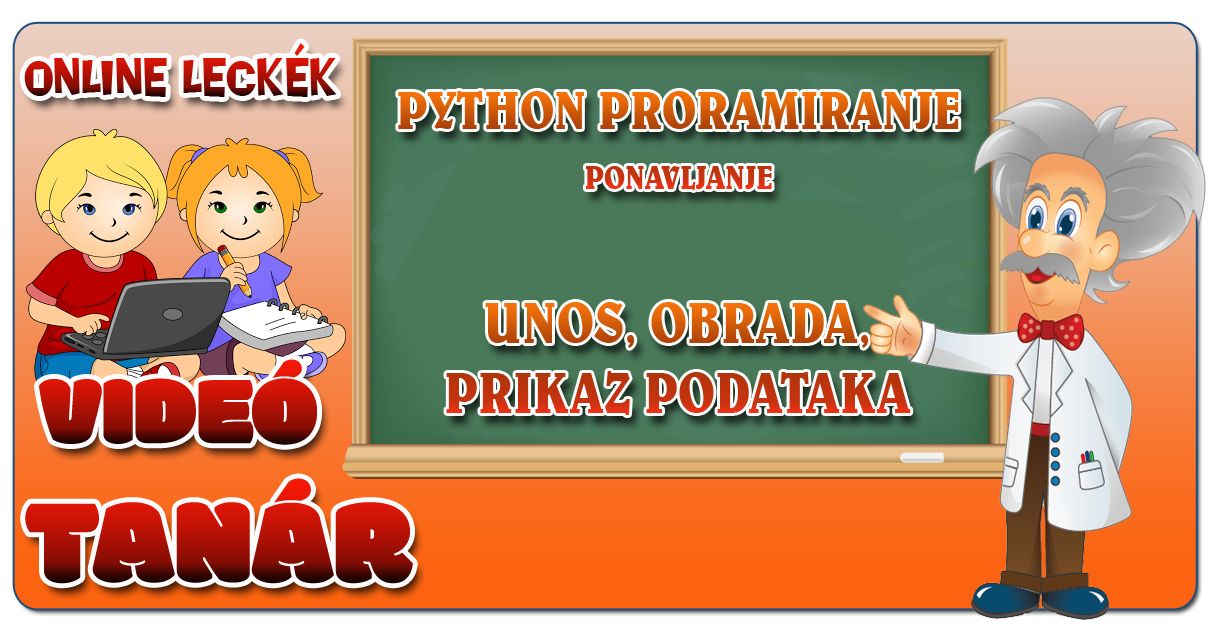 Preko današnje lekcije ponovićemo pajton programiranje. Teme, koje ćemo obraditi: unos podataka, obrada podatakak, ispis podataka