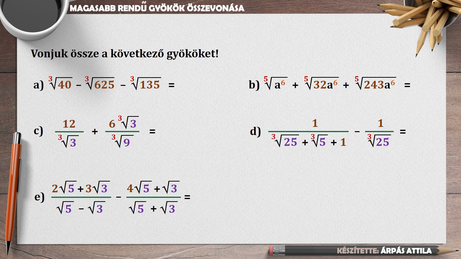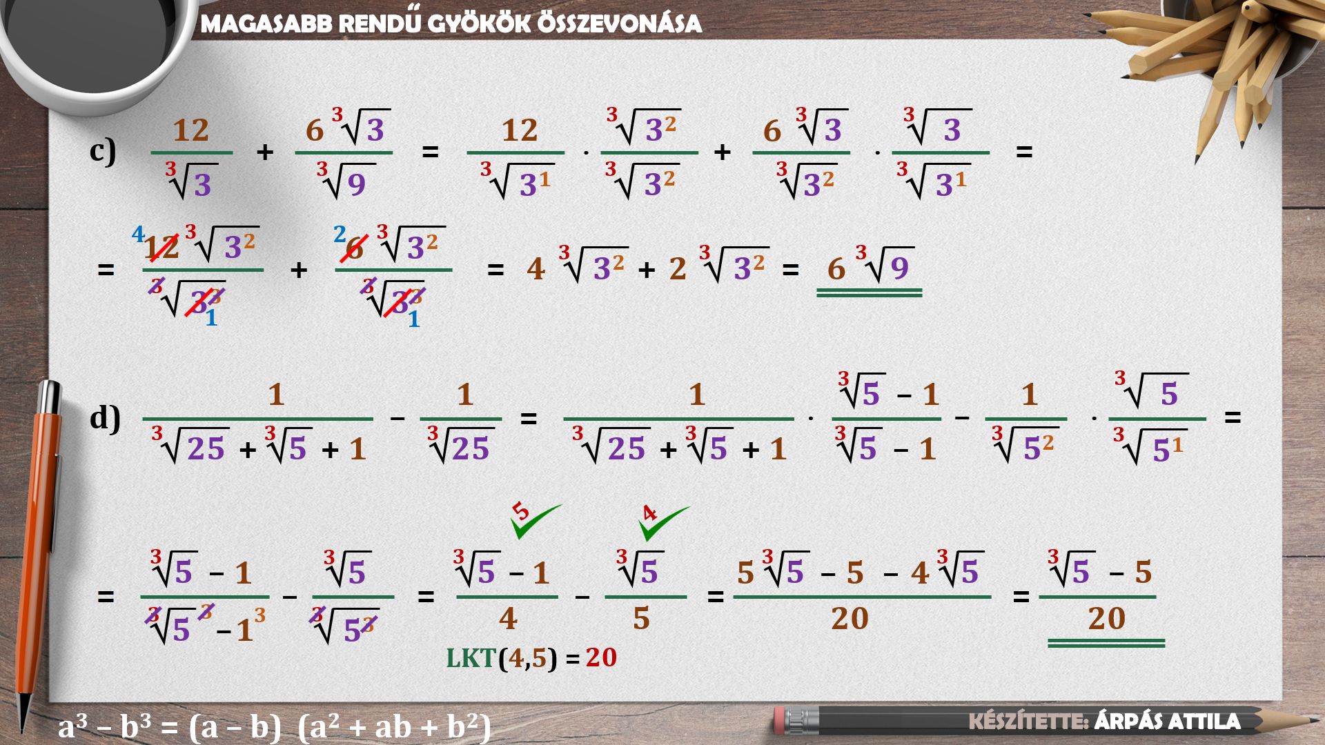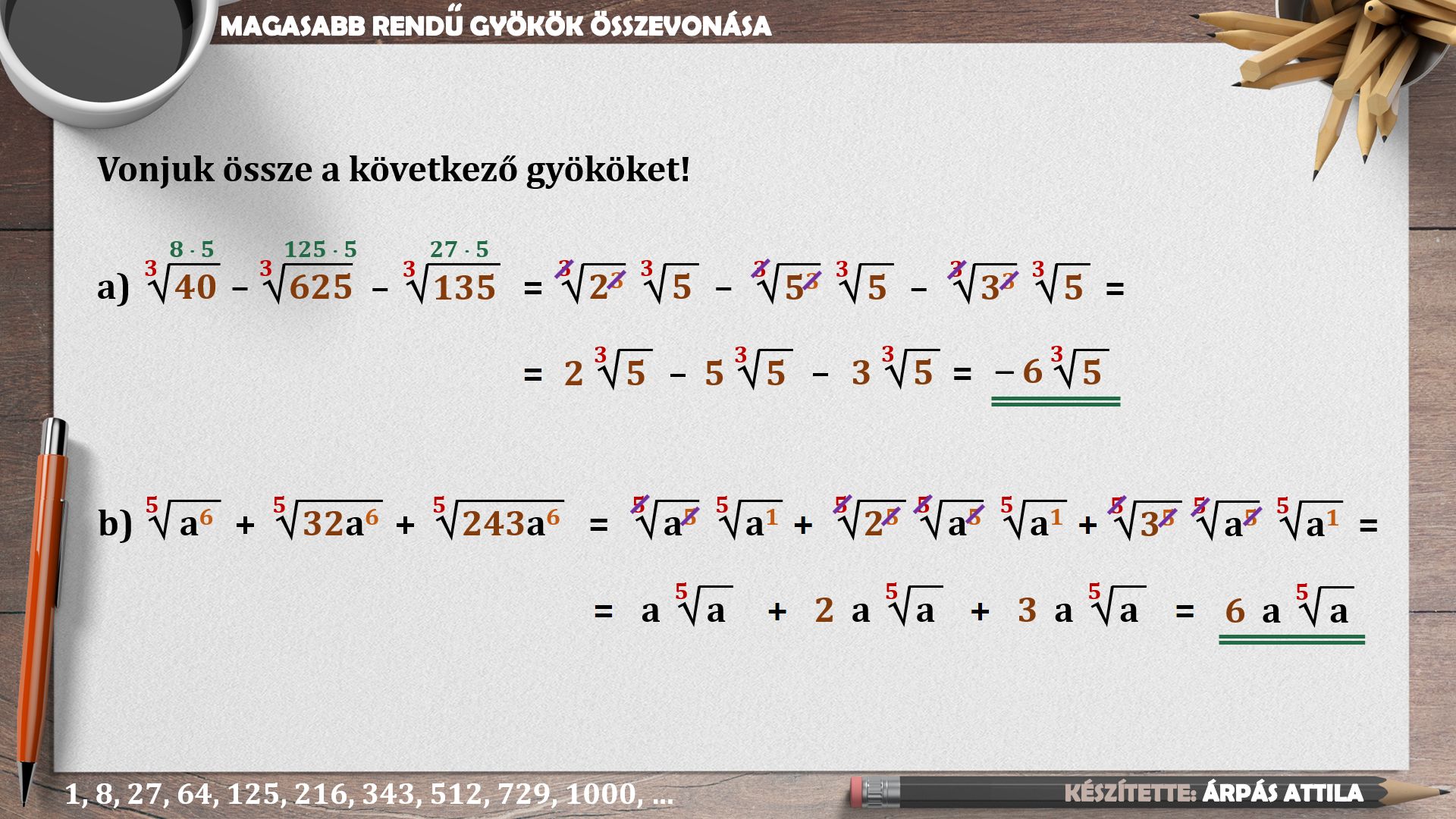 GYÖKÖK ÖSSZEVONÁSA (MŰVELETEK A MAGASABB RENDŰ GYÖKÖKKEL) – KIDOLGOZOTT FELADATOK