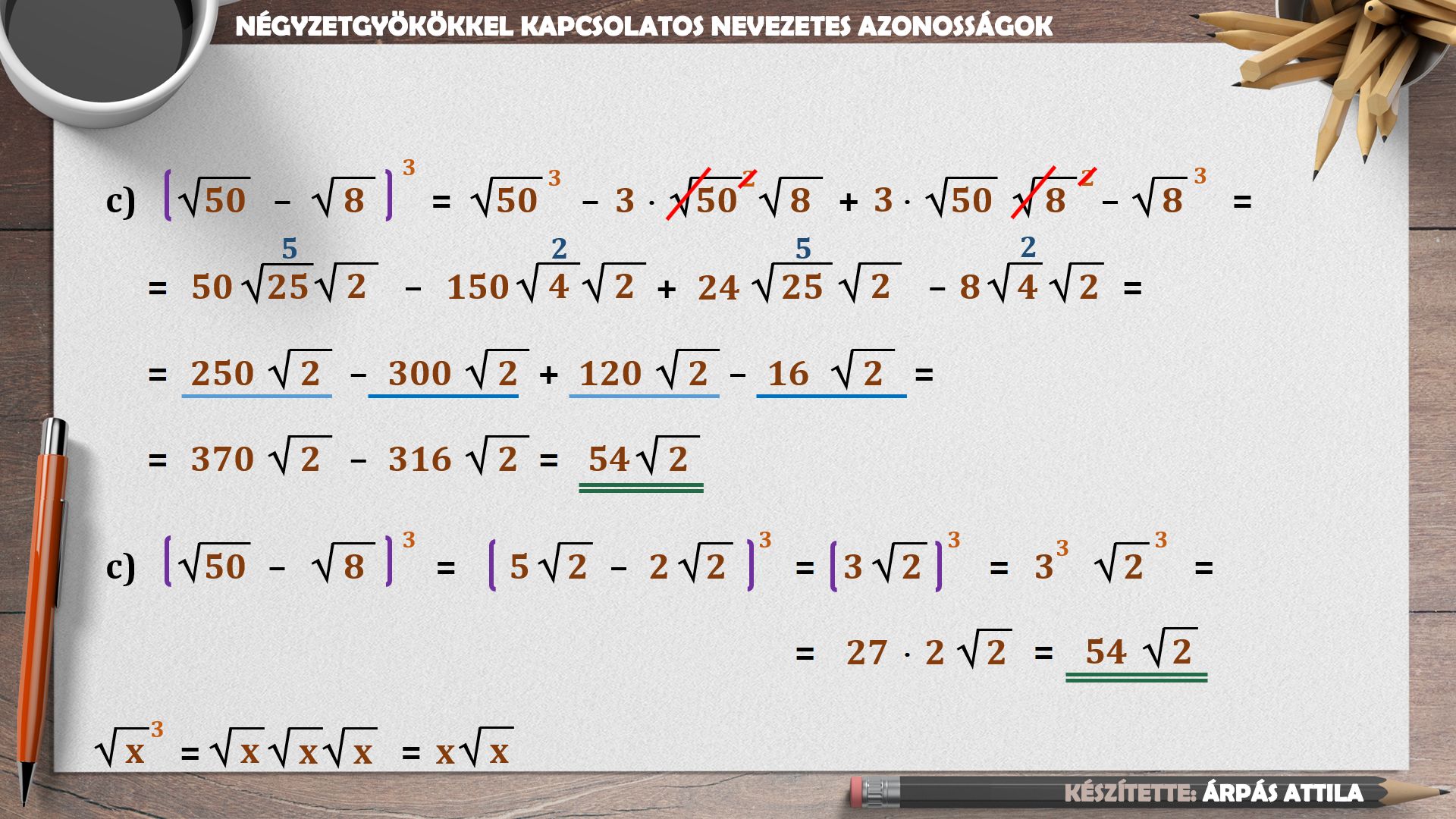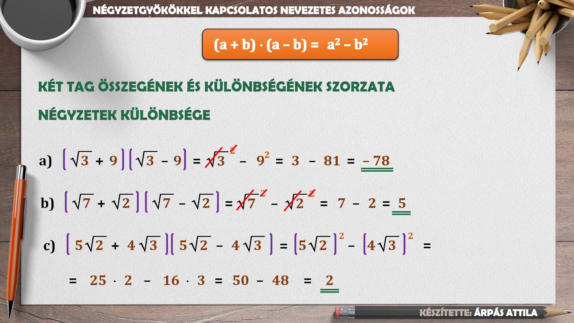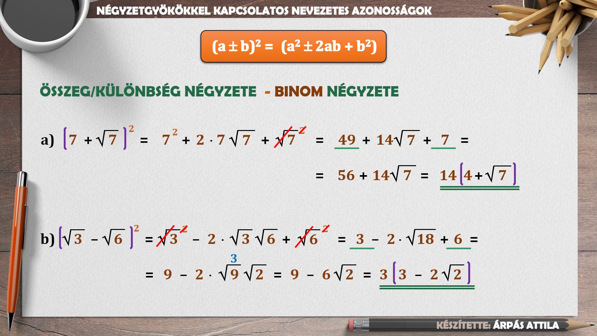 NEVEZETES AZONOSSÁGOK NÉGYZETGYÖKÖKKEL