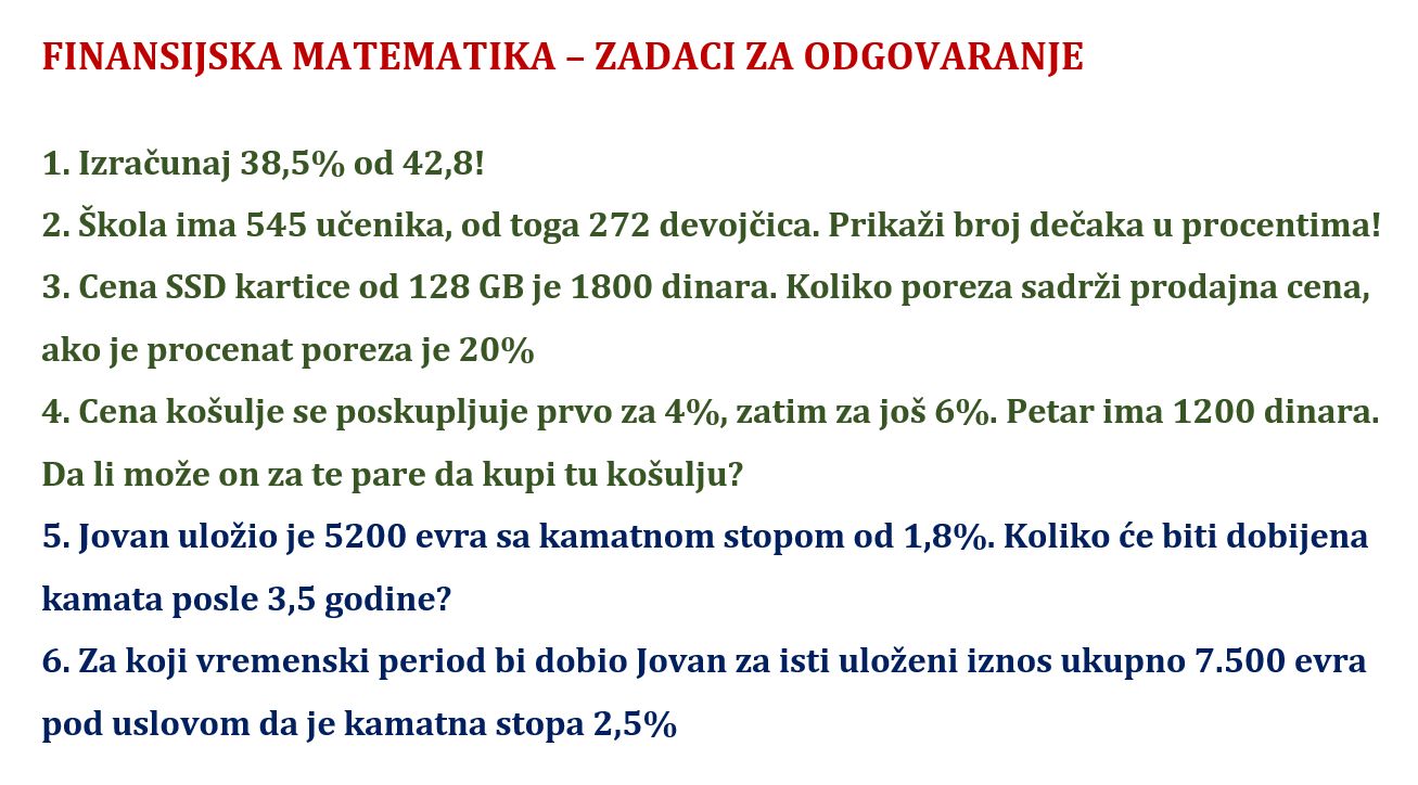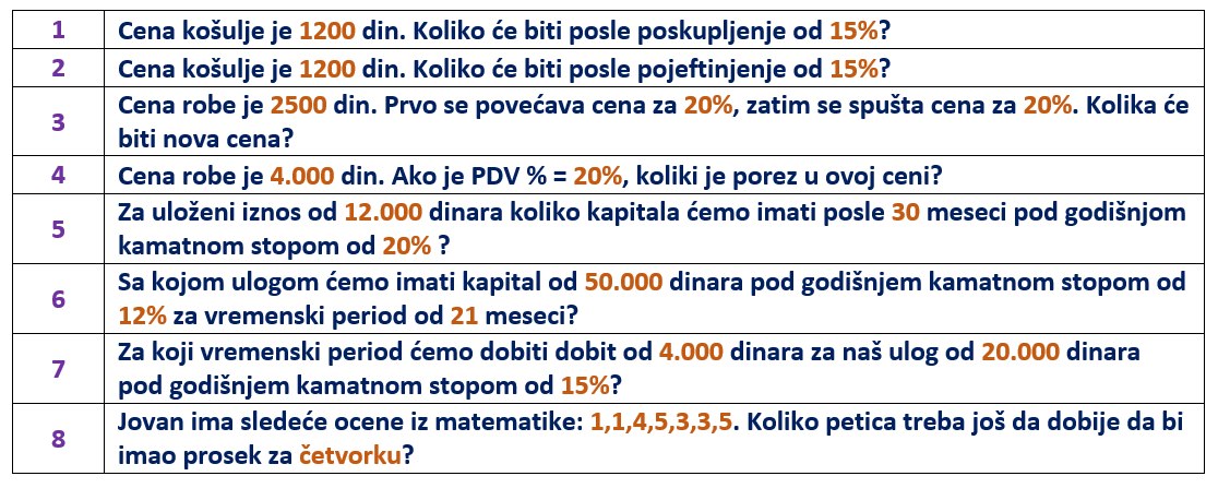 U ovoj lekciji rešavamo zadatke iz oblasti finansijske matematike (procentni račun, kamatni račun) pomoću tabele (MS Excel / online tabele)