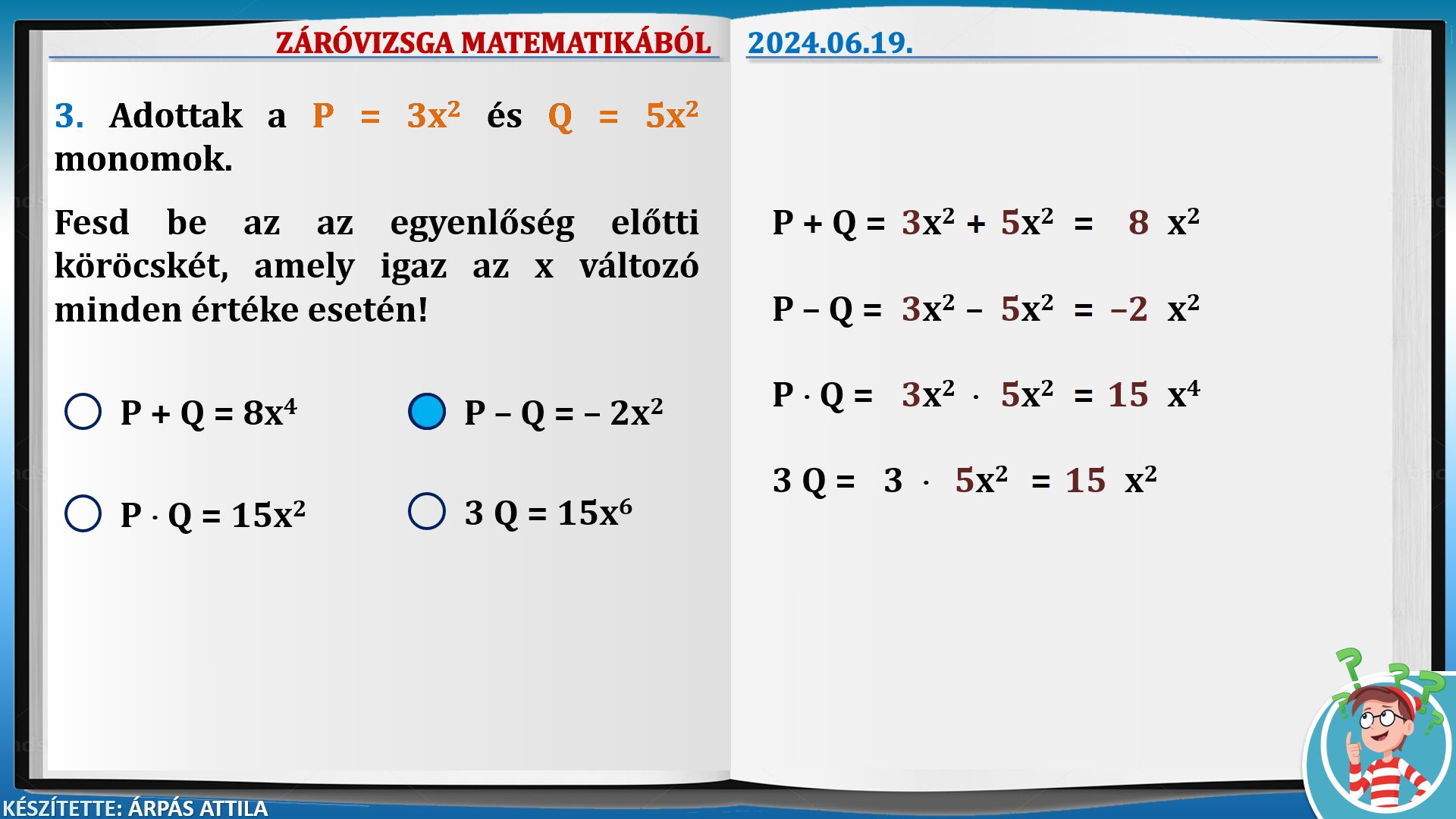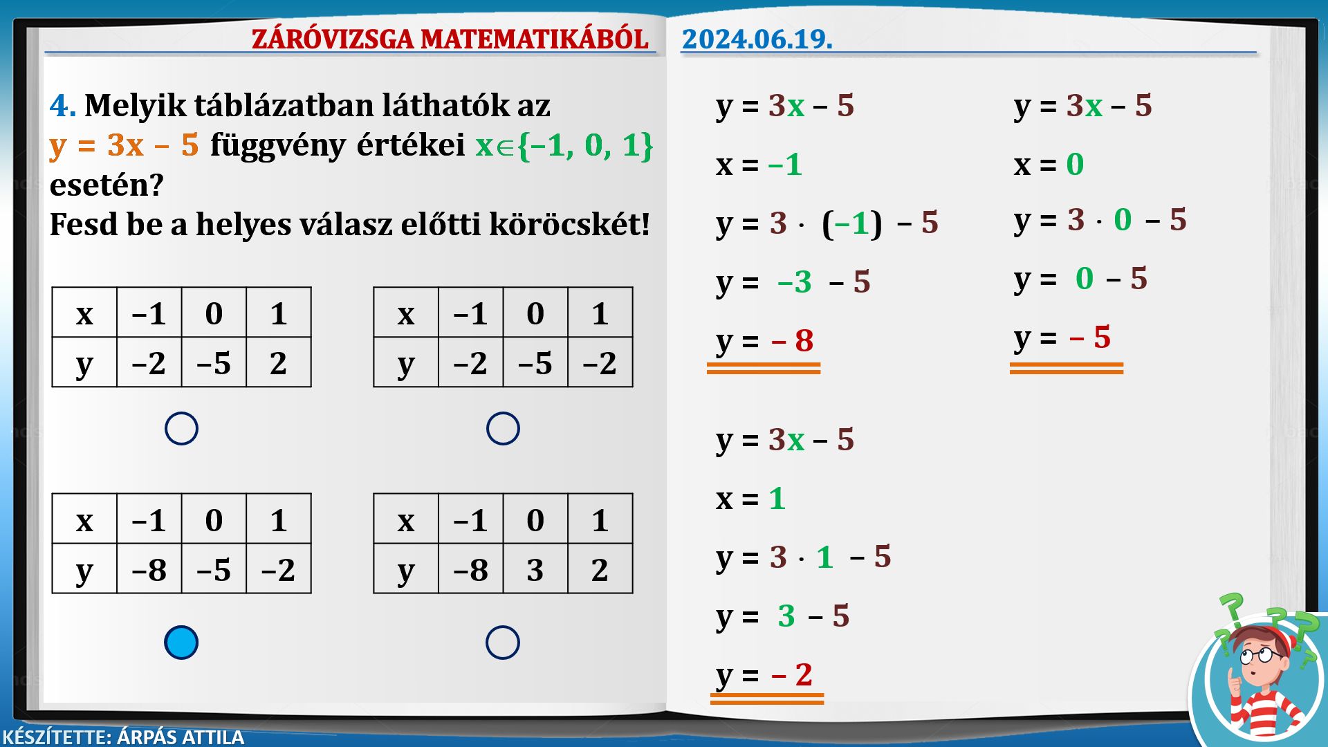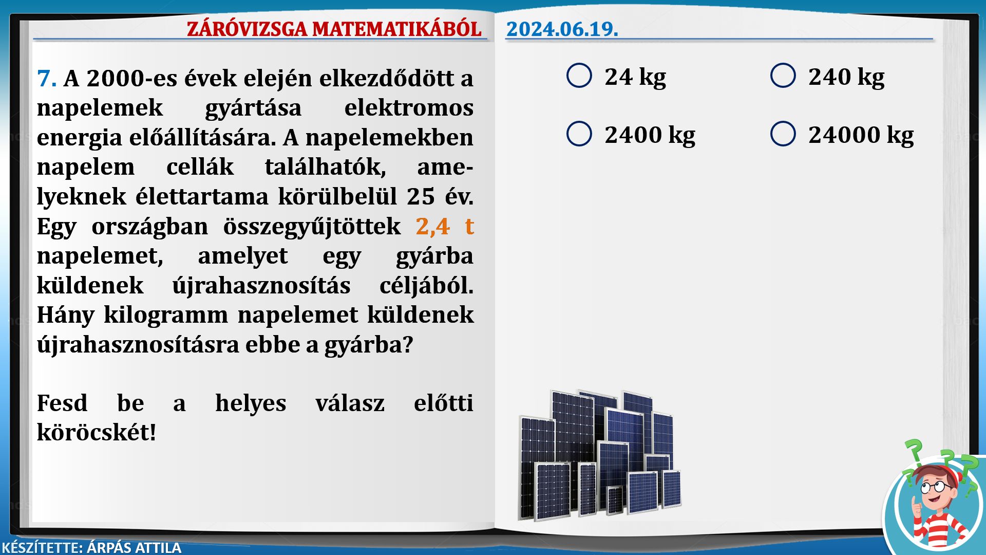 ZÁRÓVIZSGA (KISÉRETTSÉGI) MATEMATIKÁBÓL AZ ÁLTALÁNOS ISKOLÁS TANULÓK RÉSZÉRE (2024.06.19.) – ALAPSZINTŰ FELADATOK KIDOLGOZÁSA