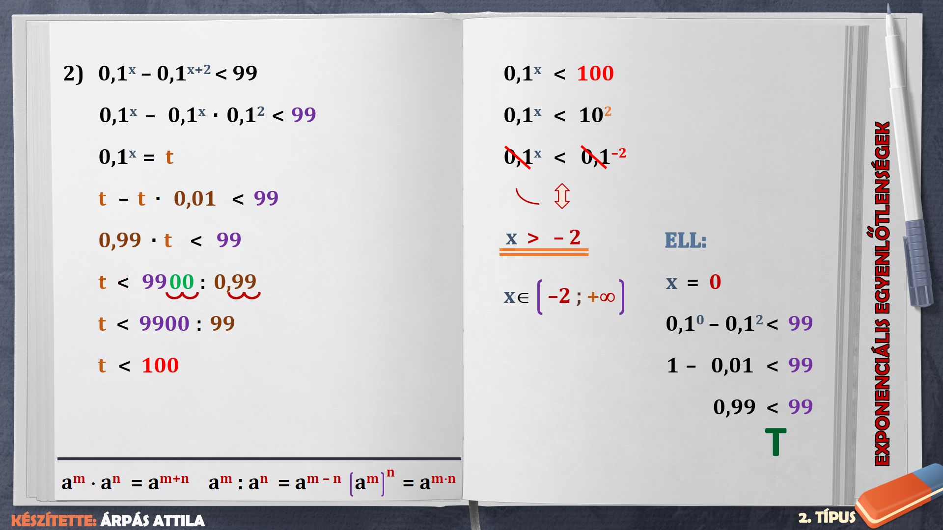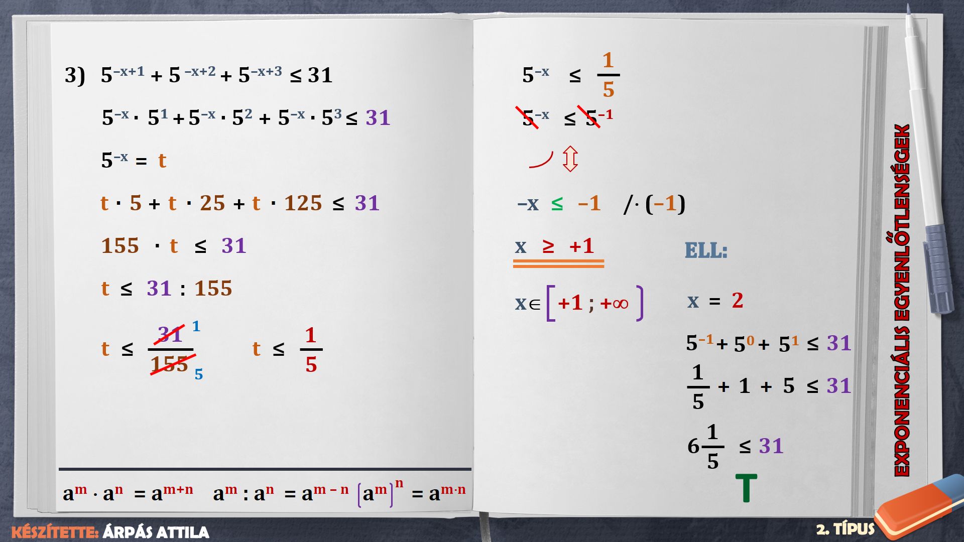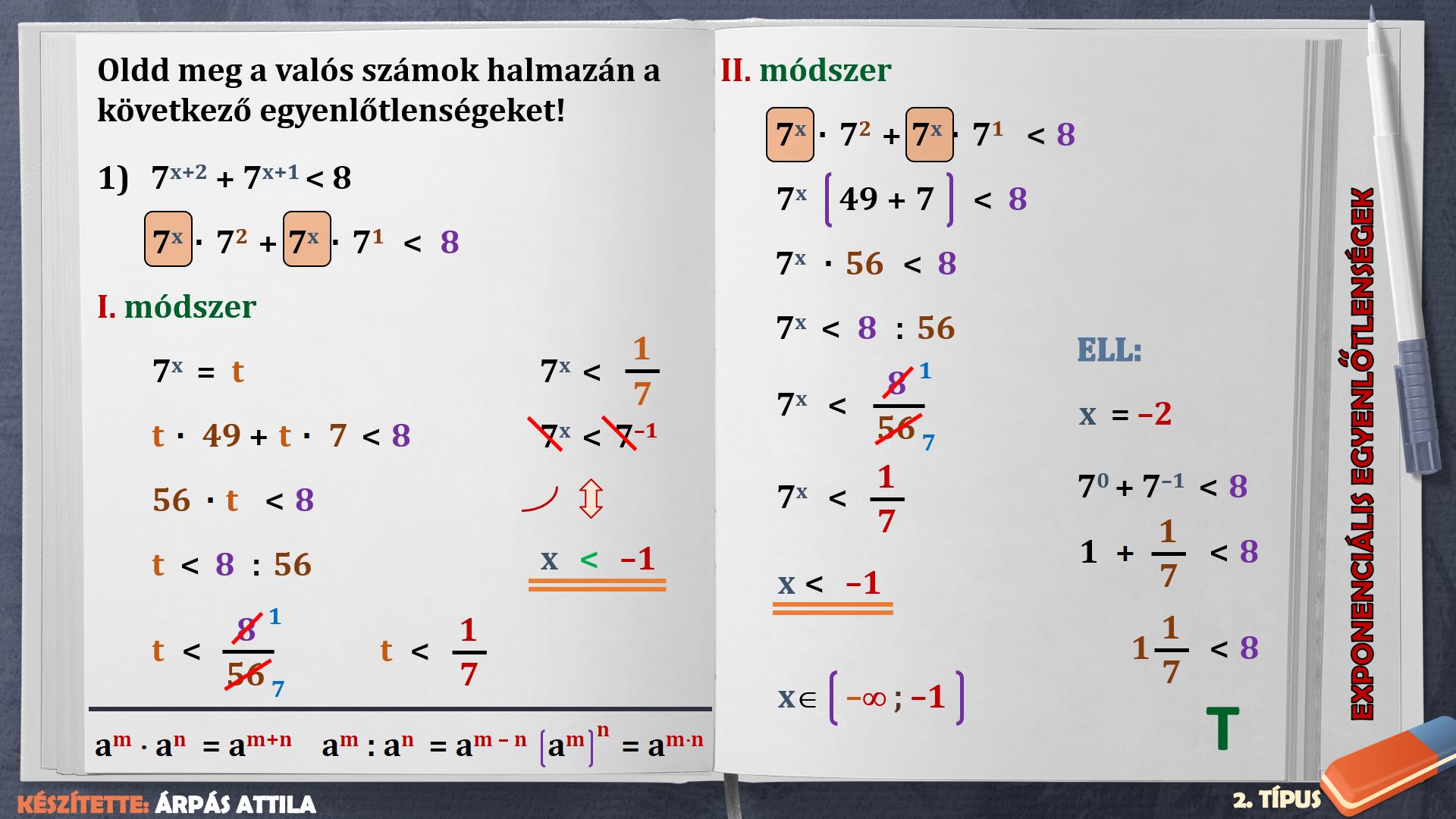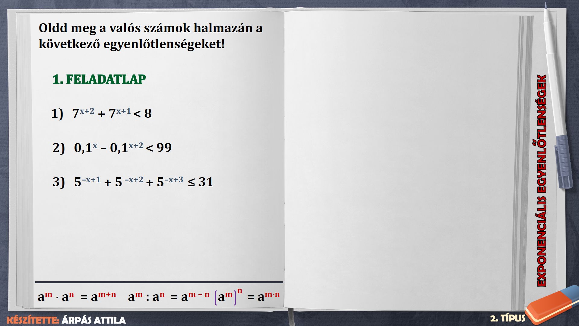EXPONENCIÁLIS EGYENLŐTLENSÉGEK – 2. TÍPUS (3. FELADATLAP)