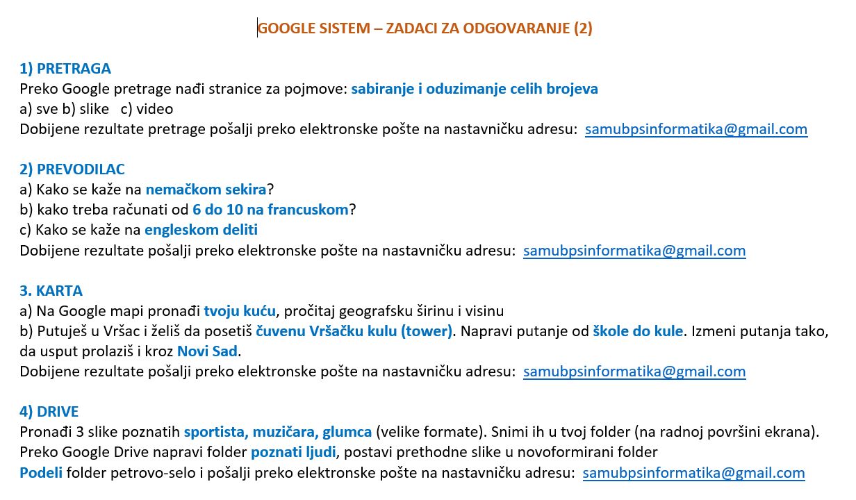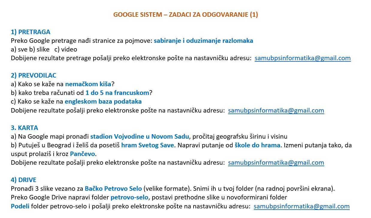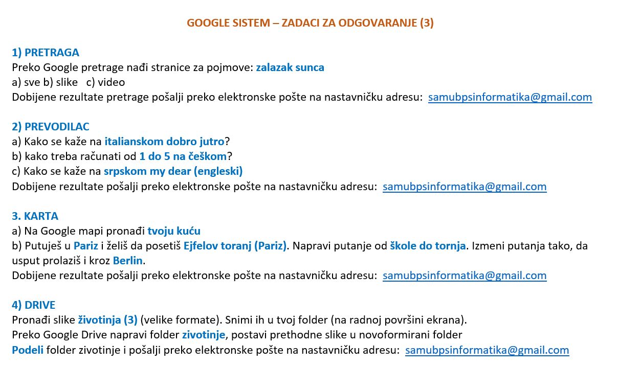 GOOGLE SISTEM – PRETRAGA, PREVODILAC, MAPE, DISK