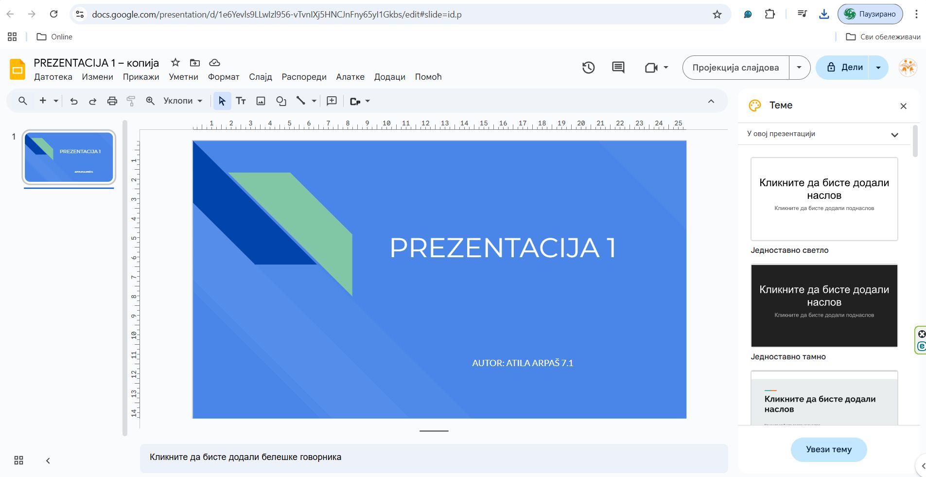 GOOGLE SLIDES – ONLINE PREZENTACIJE (KREIRANJE, TEMA, PODELA)
