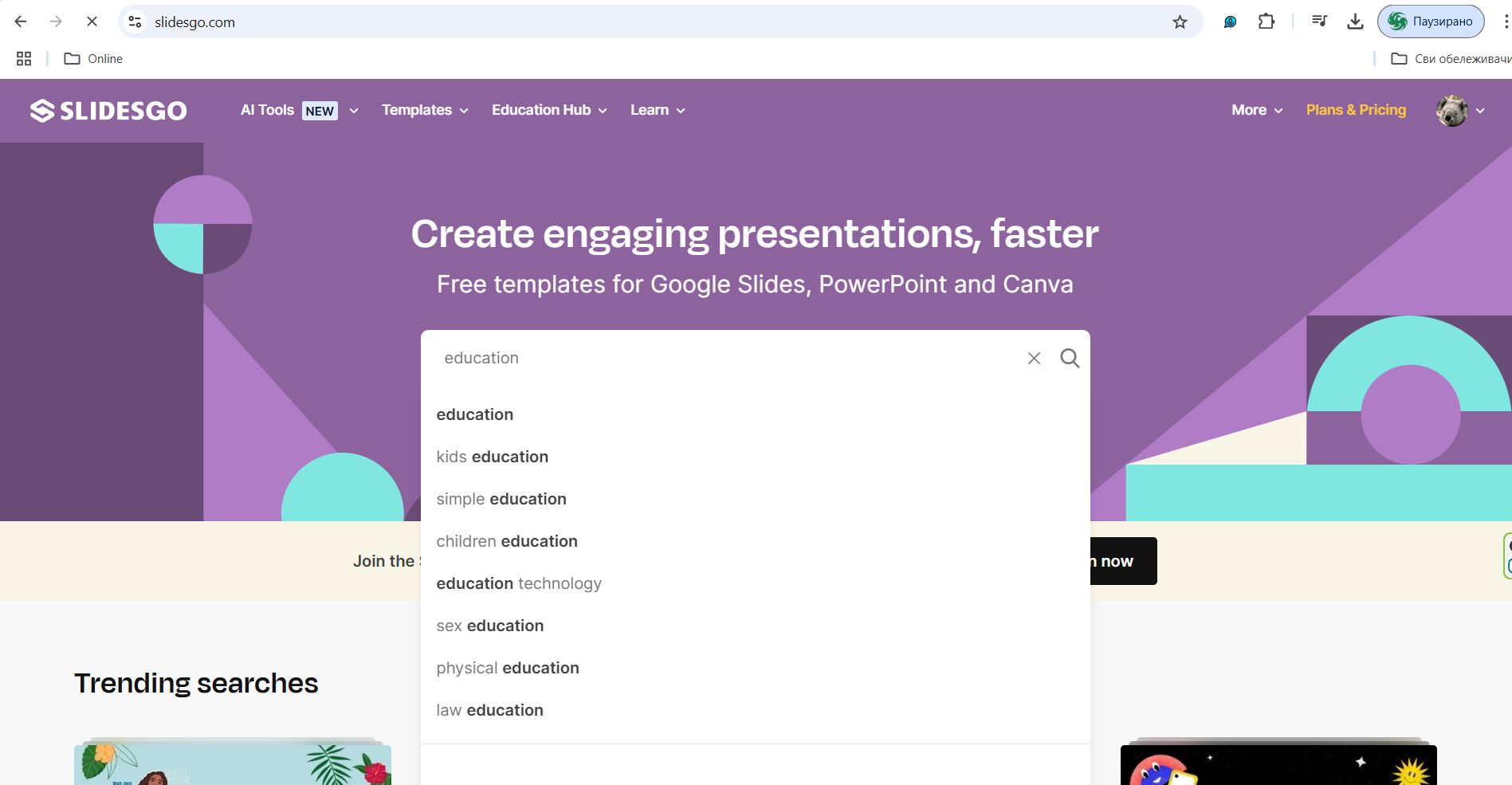 kako ubaciti gotove slajdove preko web stranice https://slidesgo.com/