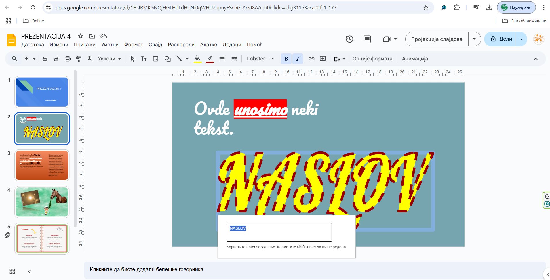 GOOGLE SLIDES – ONLINE PREZENTACIJE (TEKSTUALNI OBJEKTI)