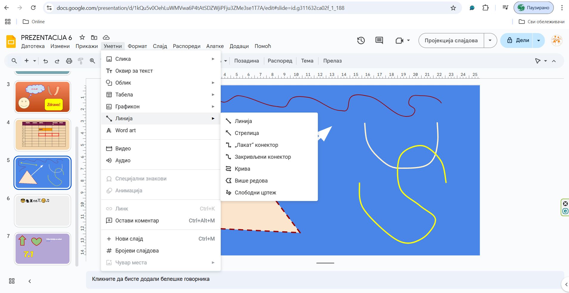 GOOGLE SLIDES – UMETANJE LINIJA