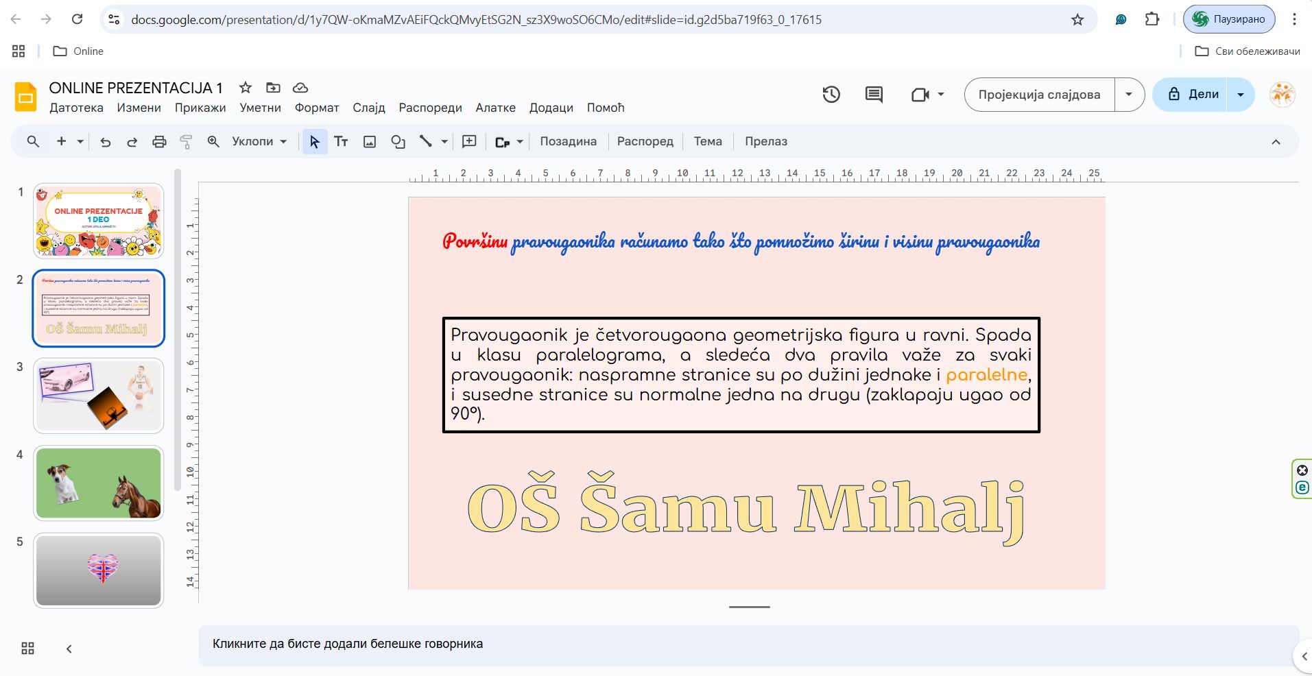 U ovoj lekciji ćemo ponoviti sve naučene elemente u Google Slide