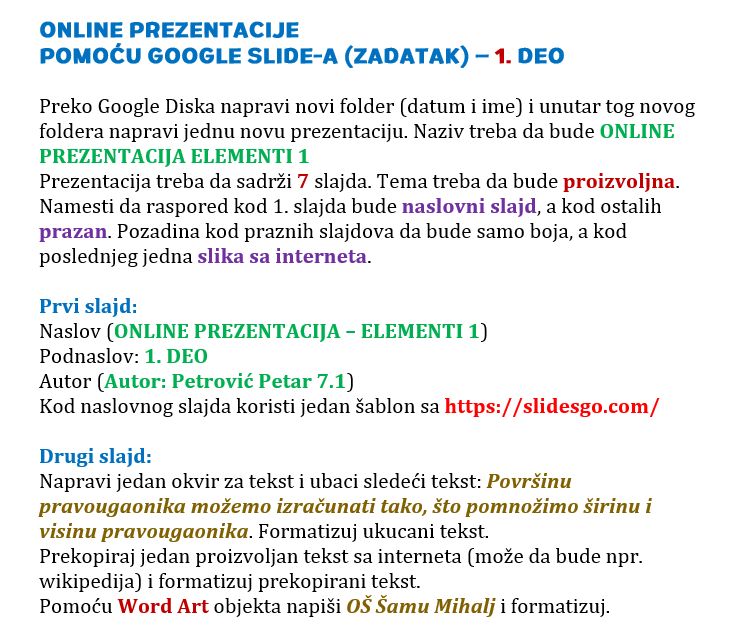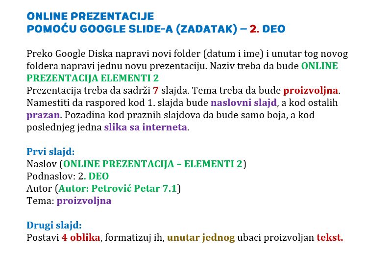 GOOGLE SLIDES – ELEMENTI - ZADATAK