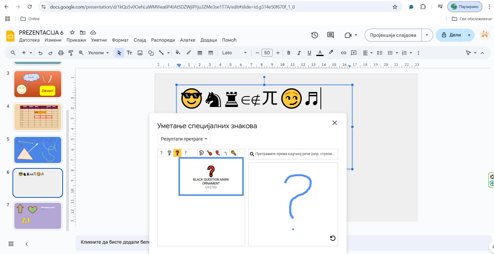 GOOGLE SLIDES – UMETANJE SPECIJALNIH ZNAKOVA