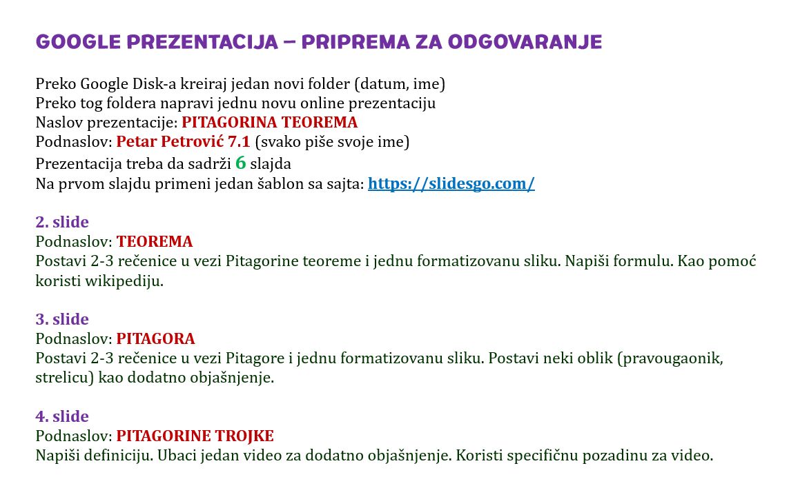 GOOGLE SLIDES – GRUPNI RAD (PROIZVOLJNA TEMA)