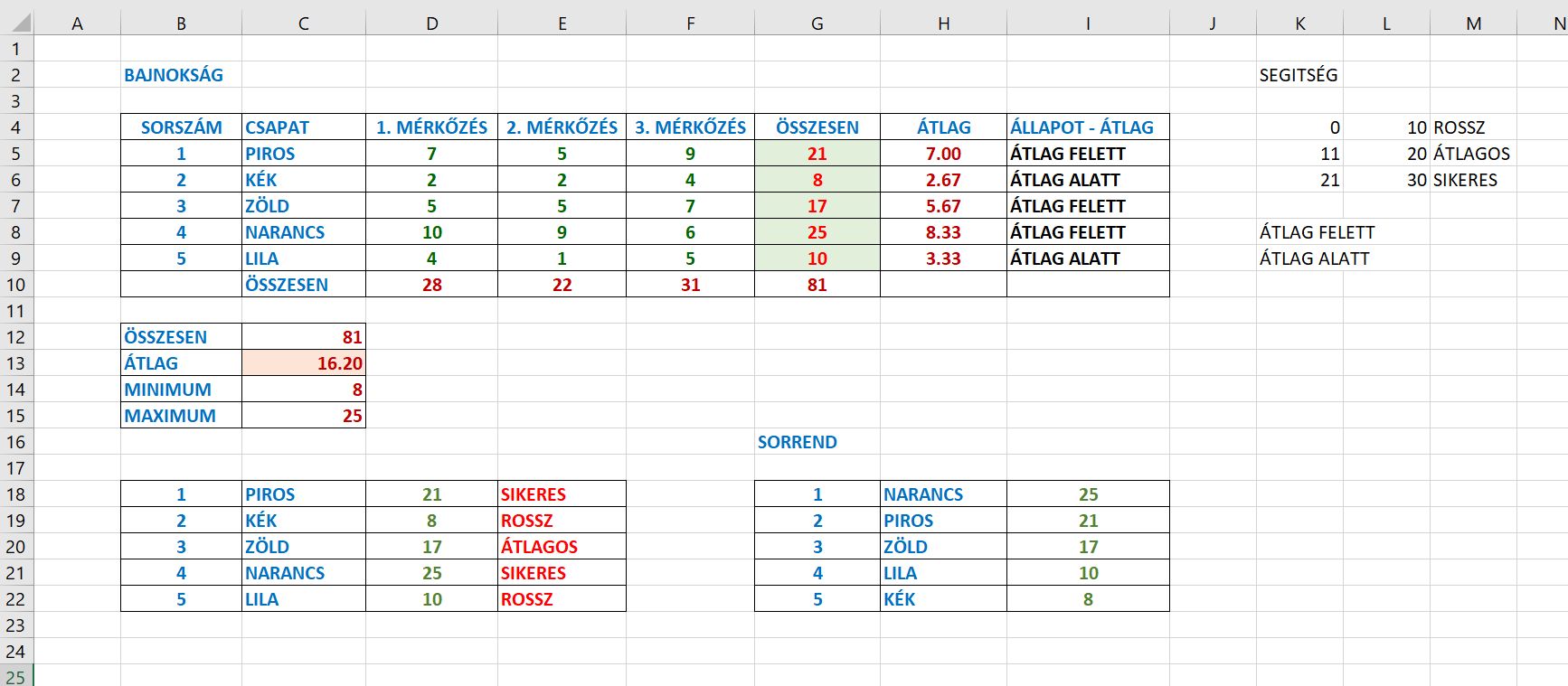 EXCEL FÜGGVÉNYEK ALKALMAZÁSA (KIDOLGOZOTT FELADAT)