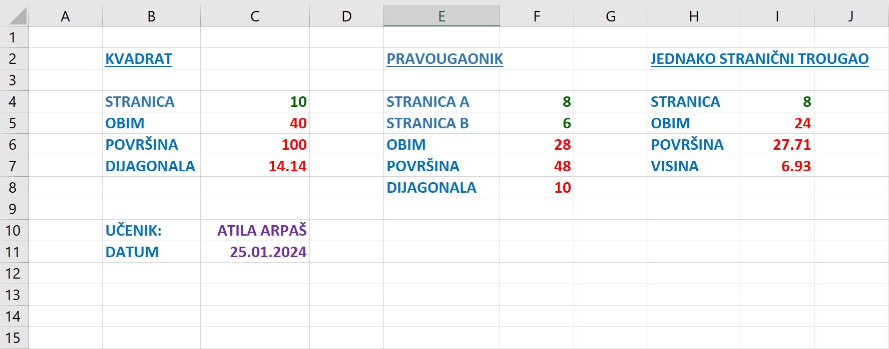 1) ZADATAK - RAD SA FORMULAMA (ONLINE TABELE)