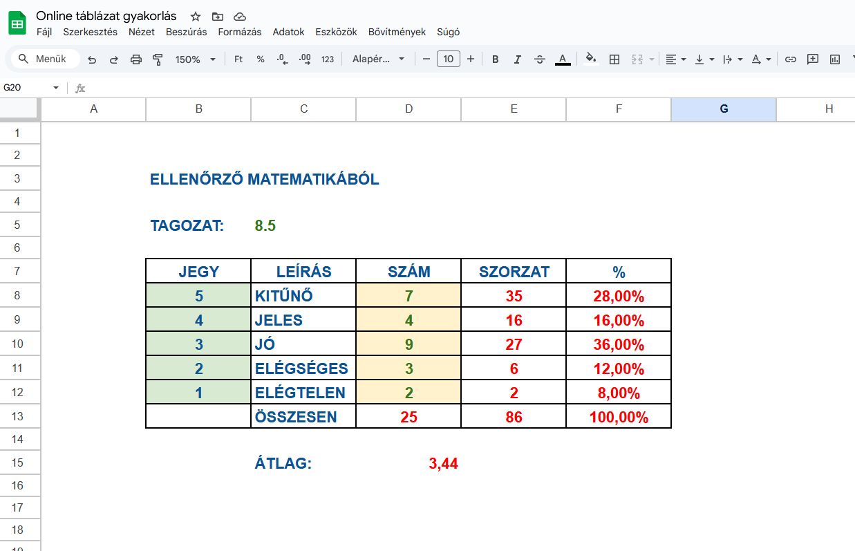 3) ONLINE TÁBLÁZATKEZELŐ – GRAFIKONOK KÉSZÍTÉSE (KIDOLGOZOTT FELADAT)