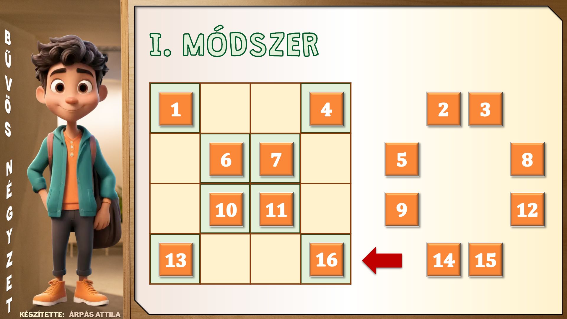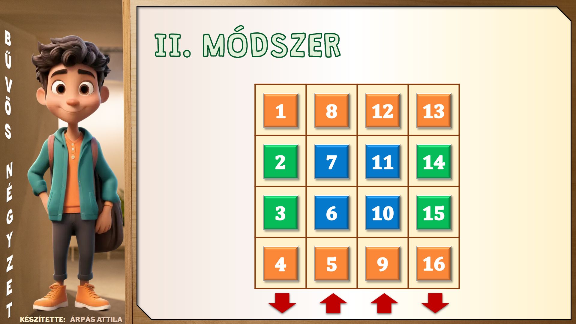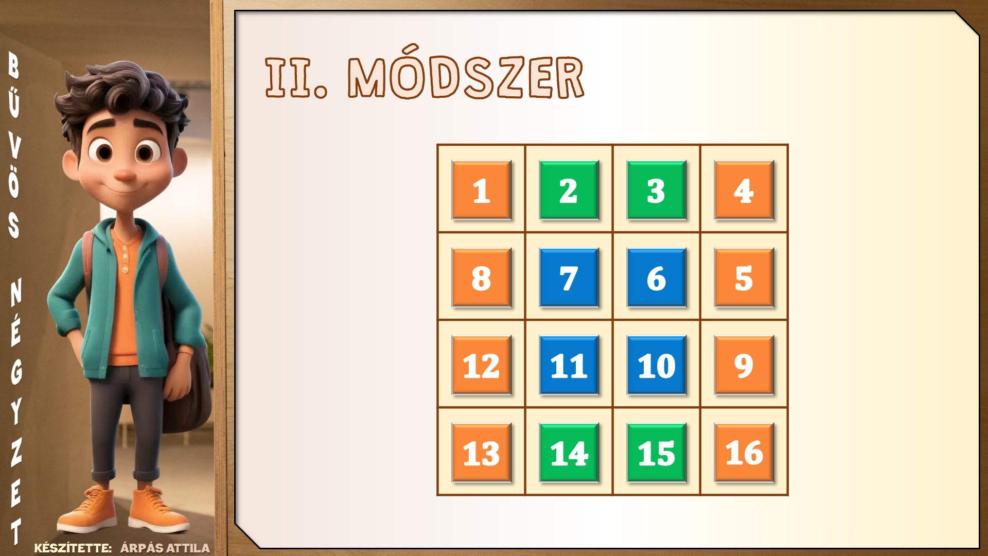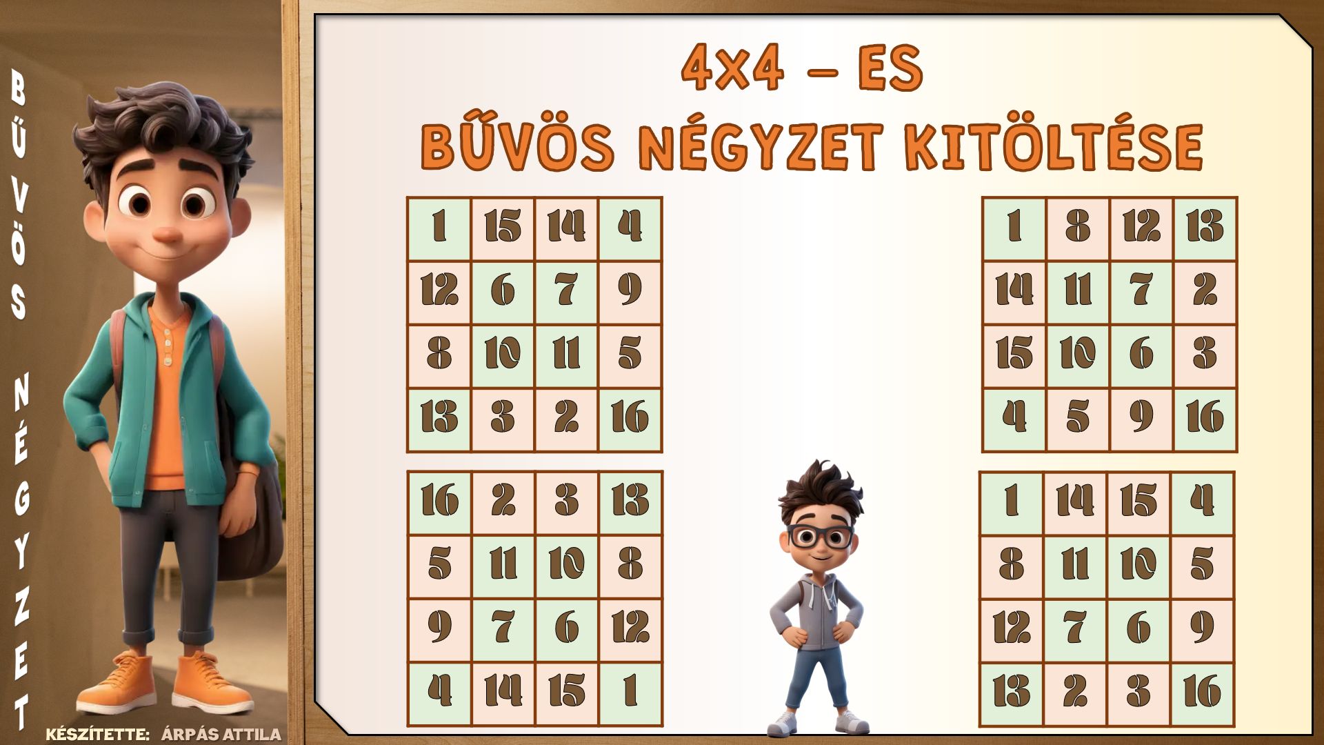 Mai leckénkben a páros rendű bűvös négyzetek közül a 4x4-est töltjük ki.