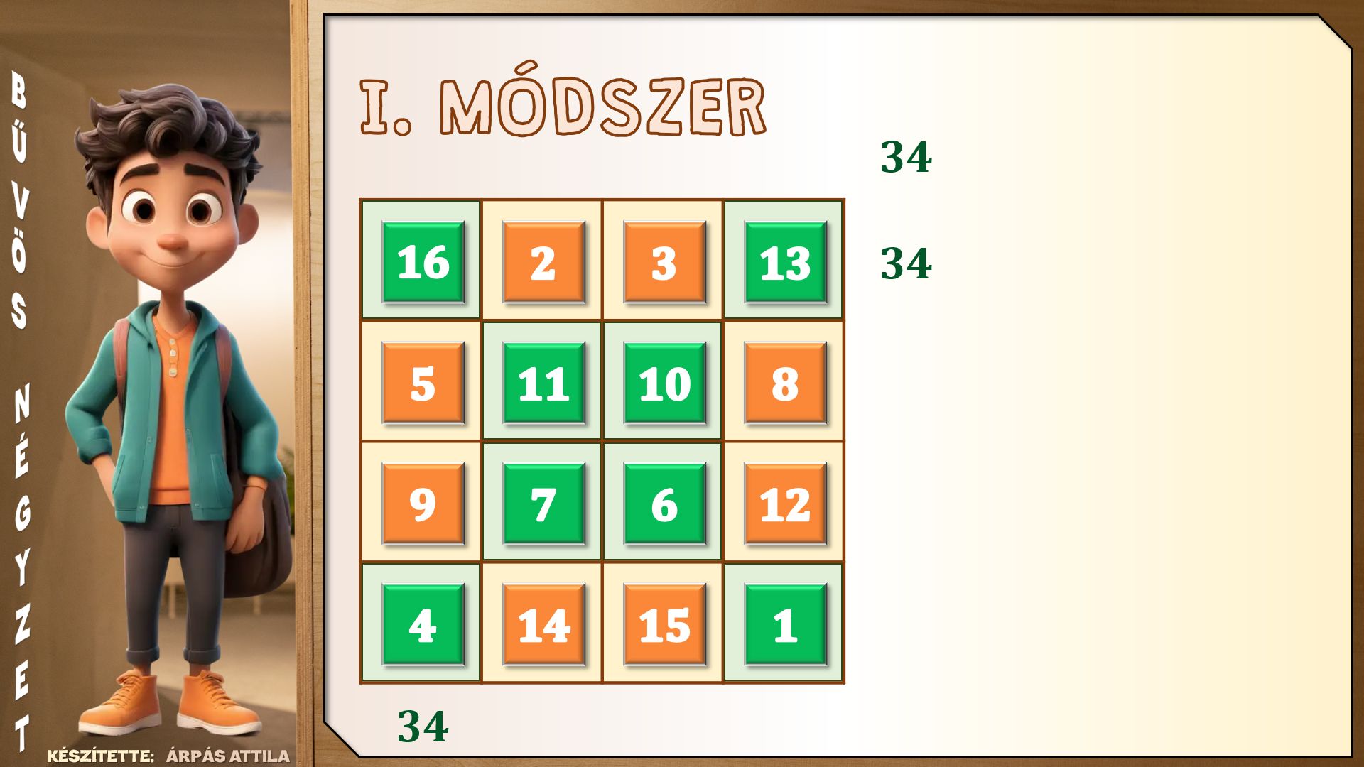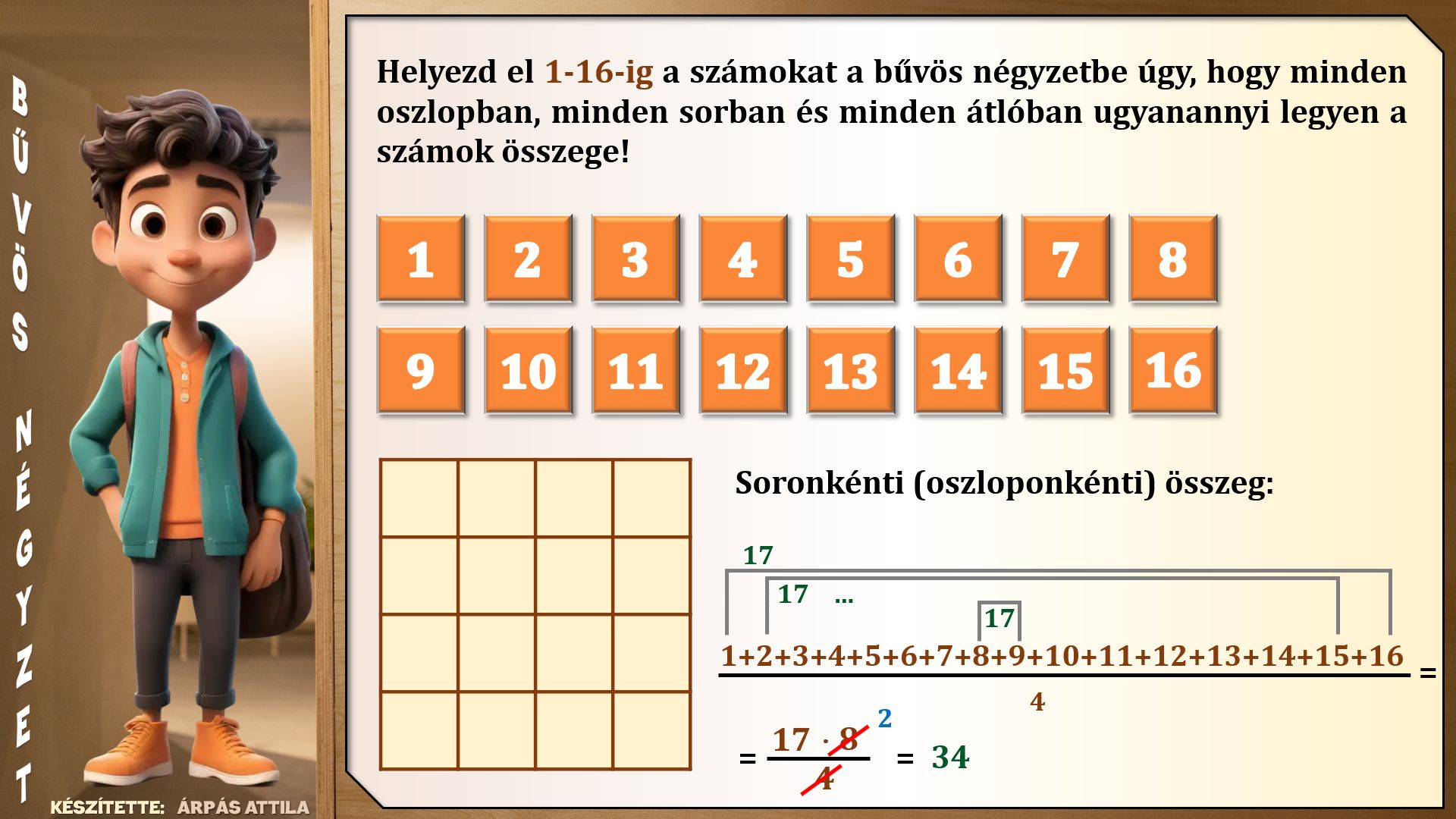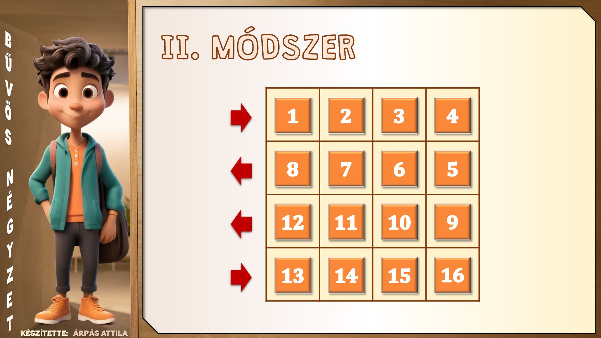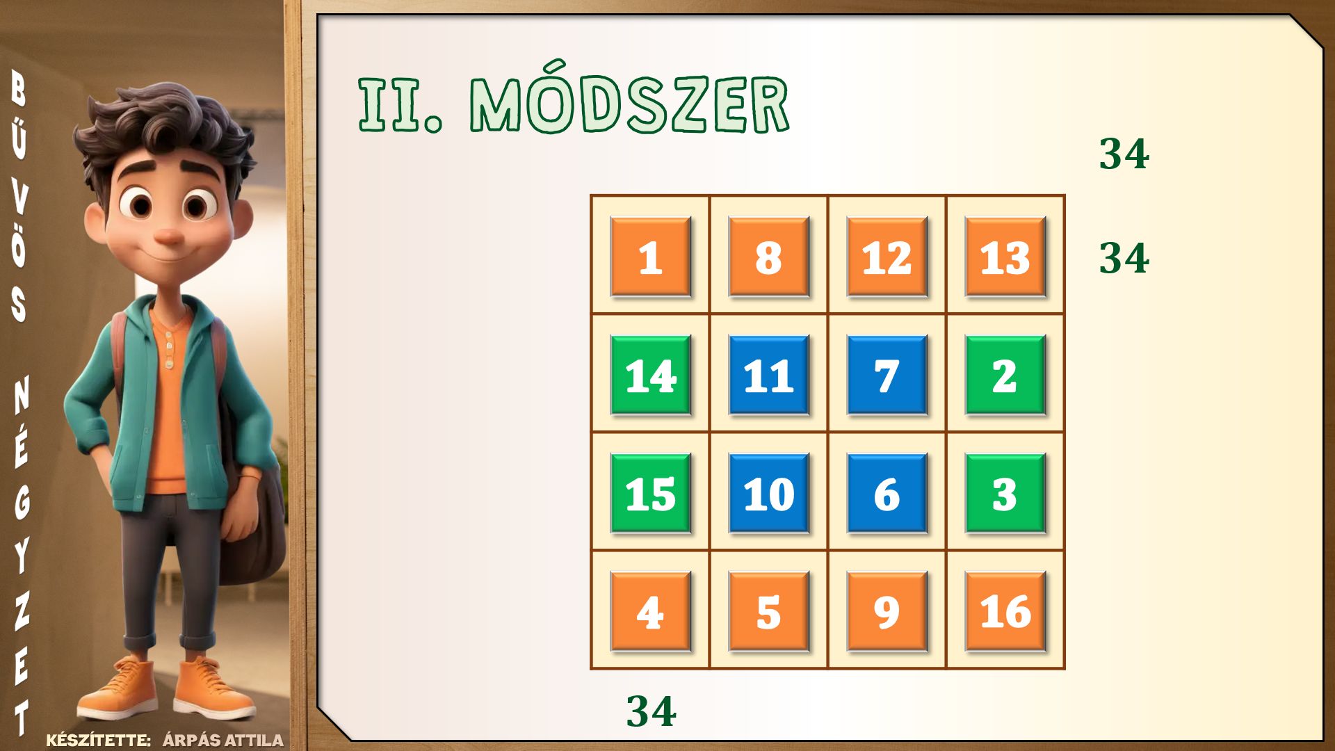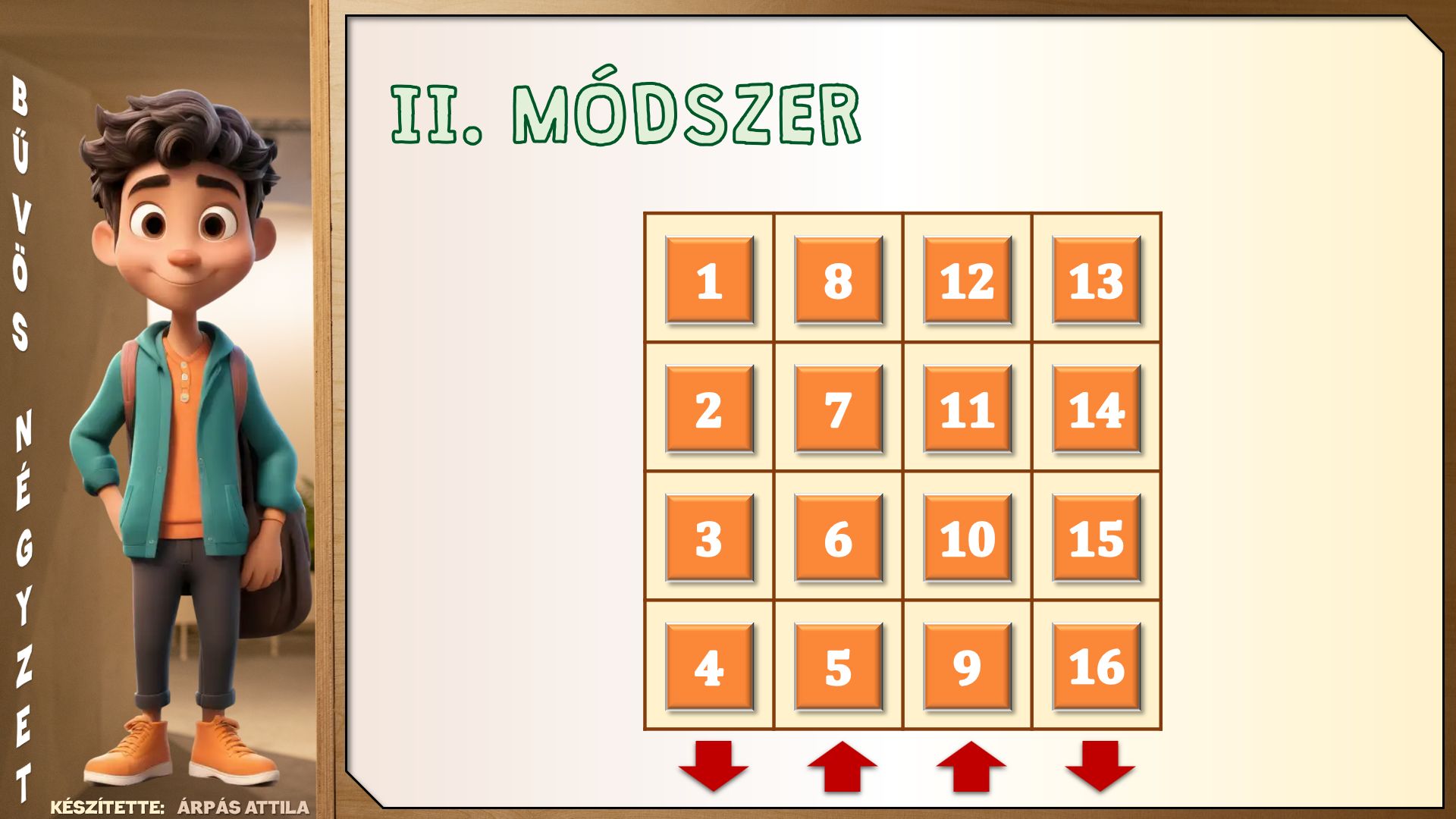Mai leckénkben a páros rendű bűvös négyzetek közül a 4x4-est töltjük ki.