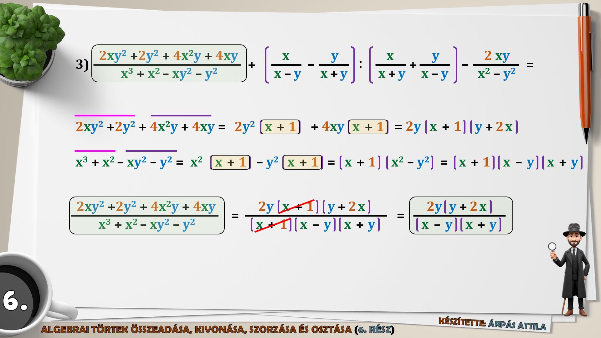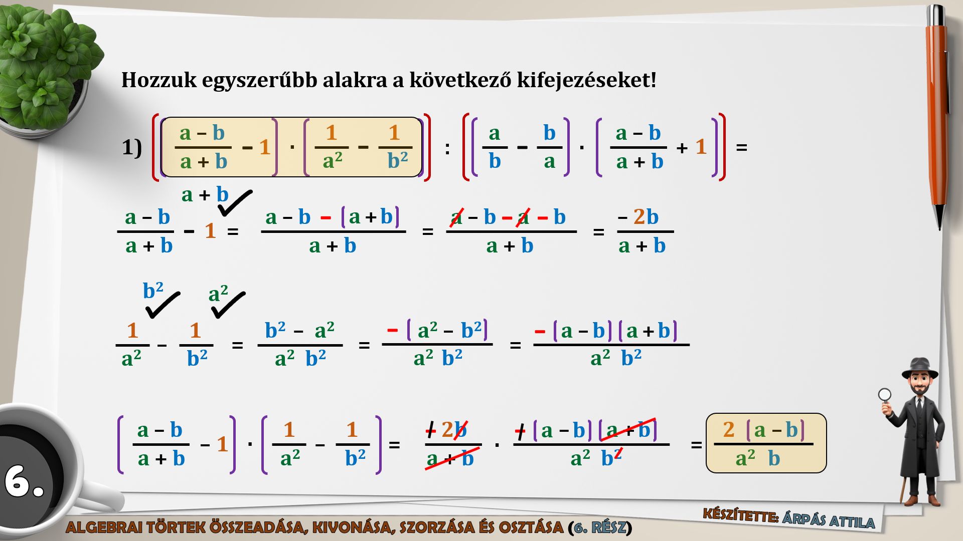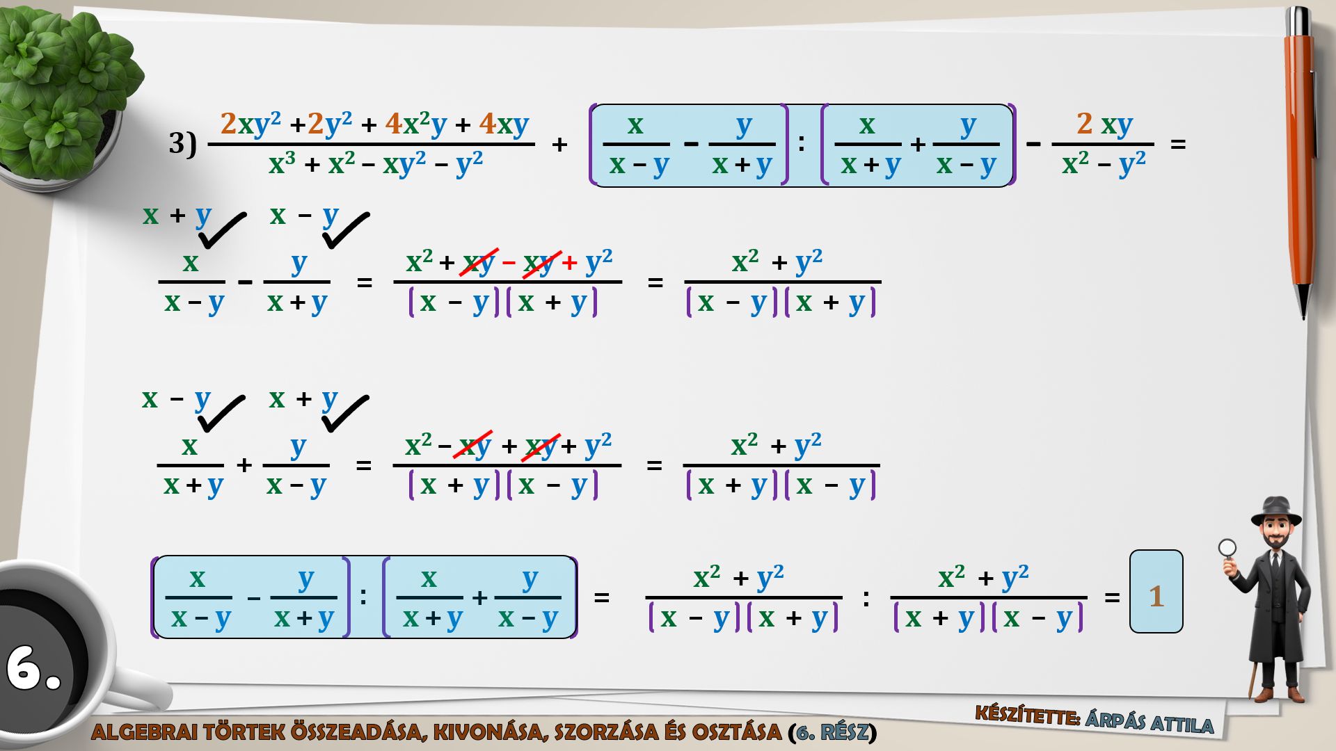 6) MŰVELETEK AZ ALGEBRAI TÖRTEKKEL (ÖSSZEADÁS, KIVONÁS, SZORZÁS, OSZTÁS) – 6. FELADATLAP