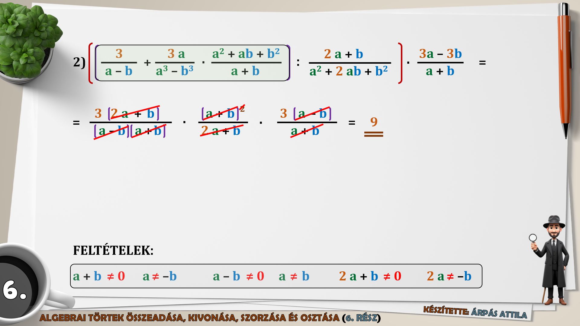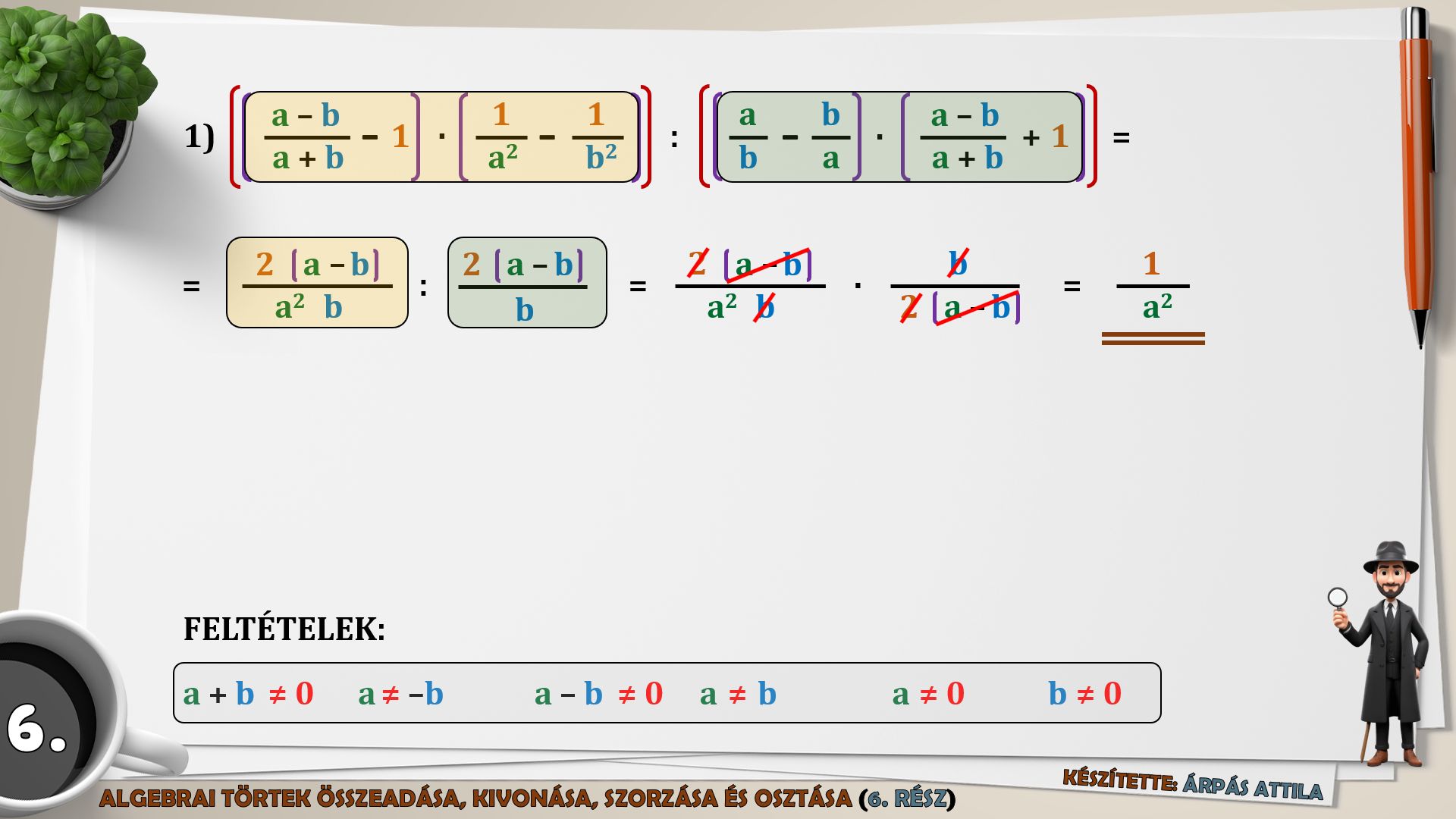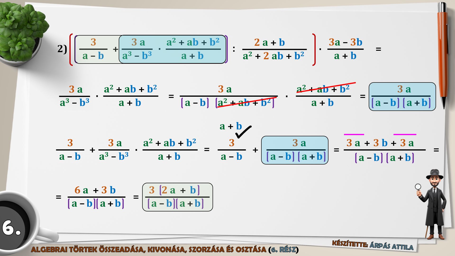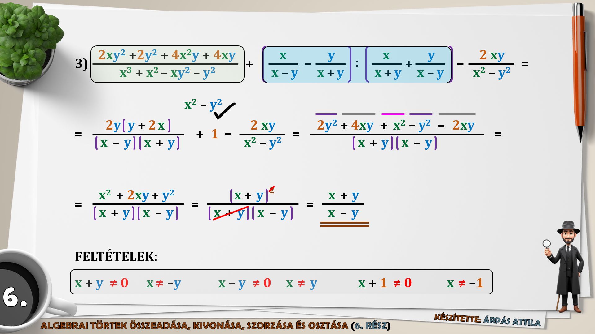 6) MŰVELETEK AZ ALGEBRAI TÖRTEKKEL (ÖSSZEADÁS, KIVONÁS, SZORZÁS, OSZTÁS) – 6. FELADATLAP