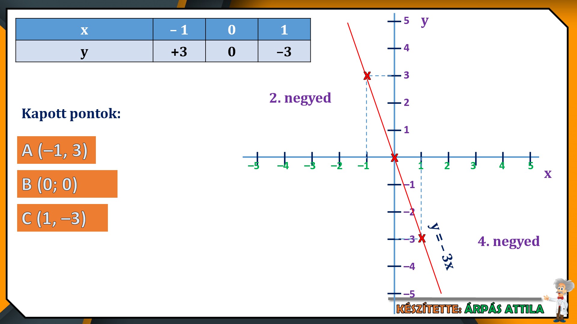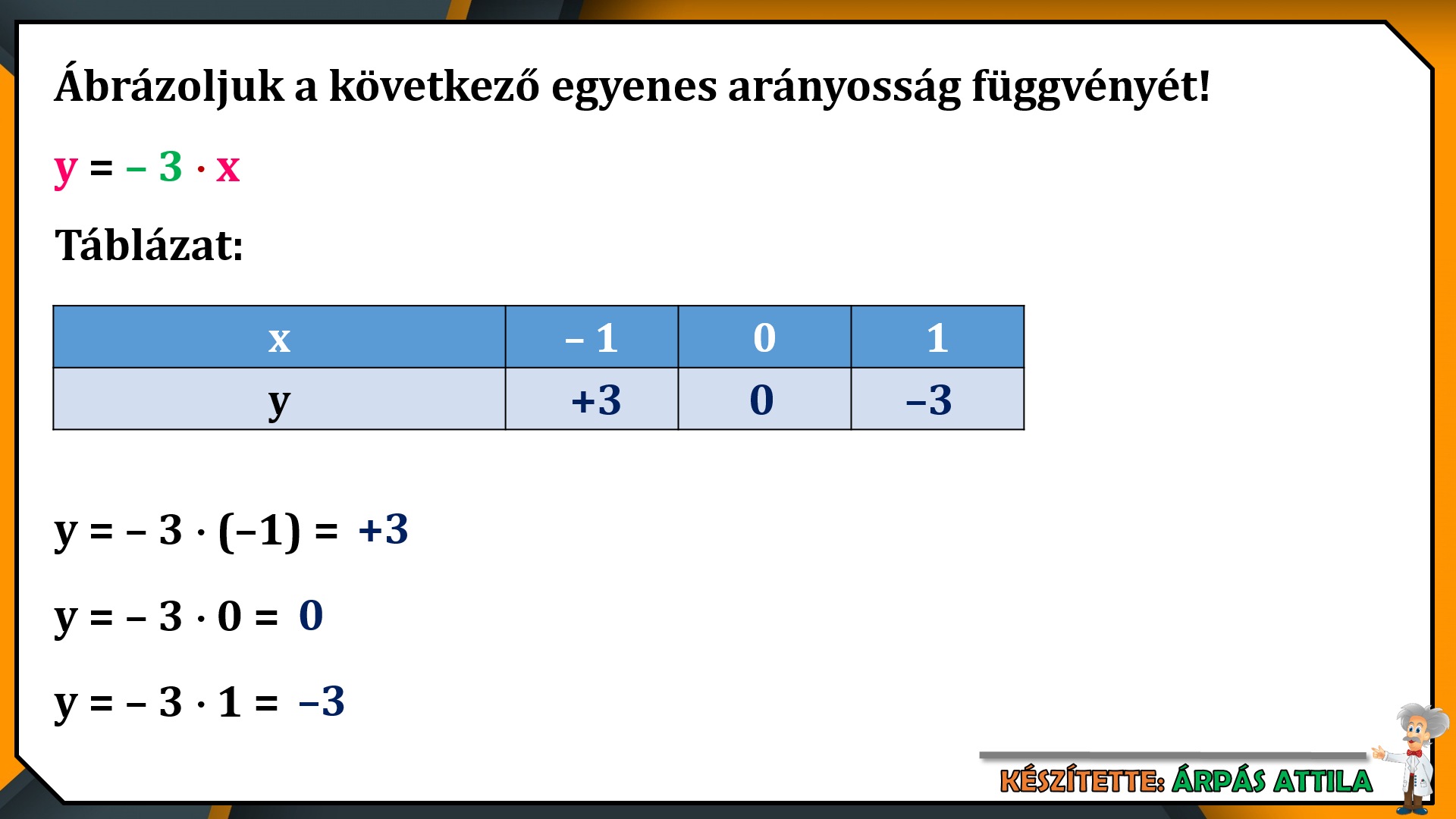 A lecke befejező részében ábrázoljuk az y=2x és y=–3x függvényeket