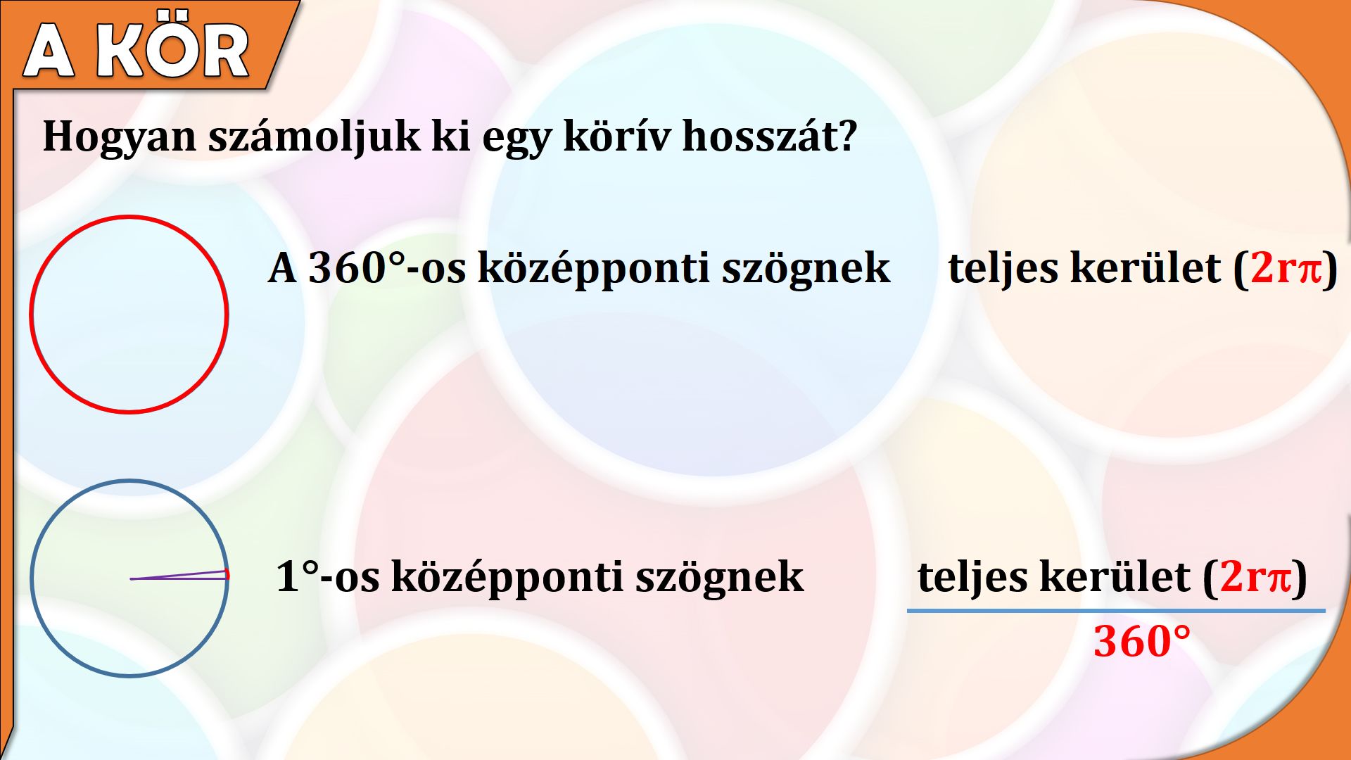 Ebben a leckében átismételjük a körív fogalmát, illetve levezetjük a képletet, amely segítségével kiszámíthatjuk a körív hosszát.