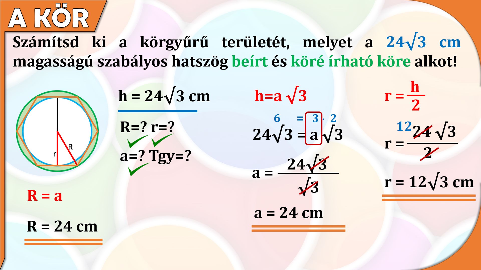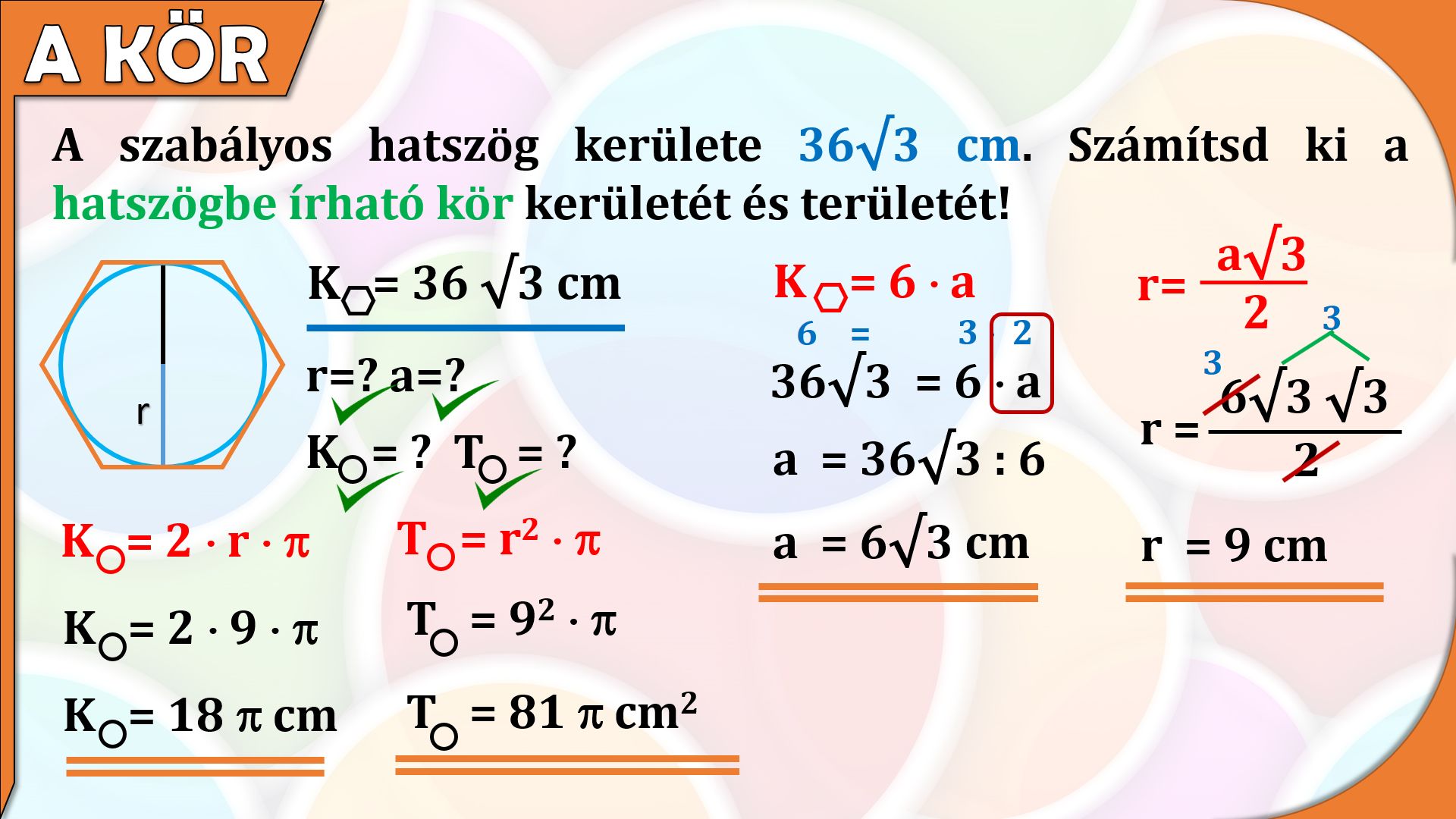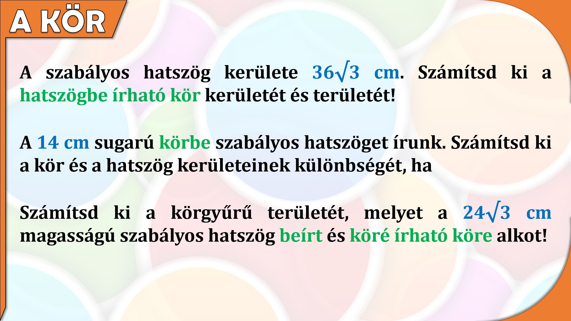 SZABÁLYOS HATSZÖG BEÍRT ÉS KÖRÉ ÍRT KÖRE - FELADATOK