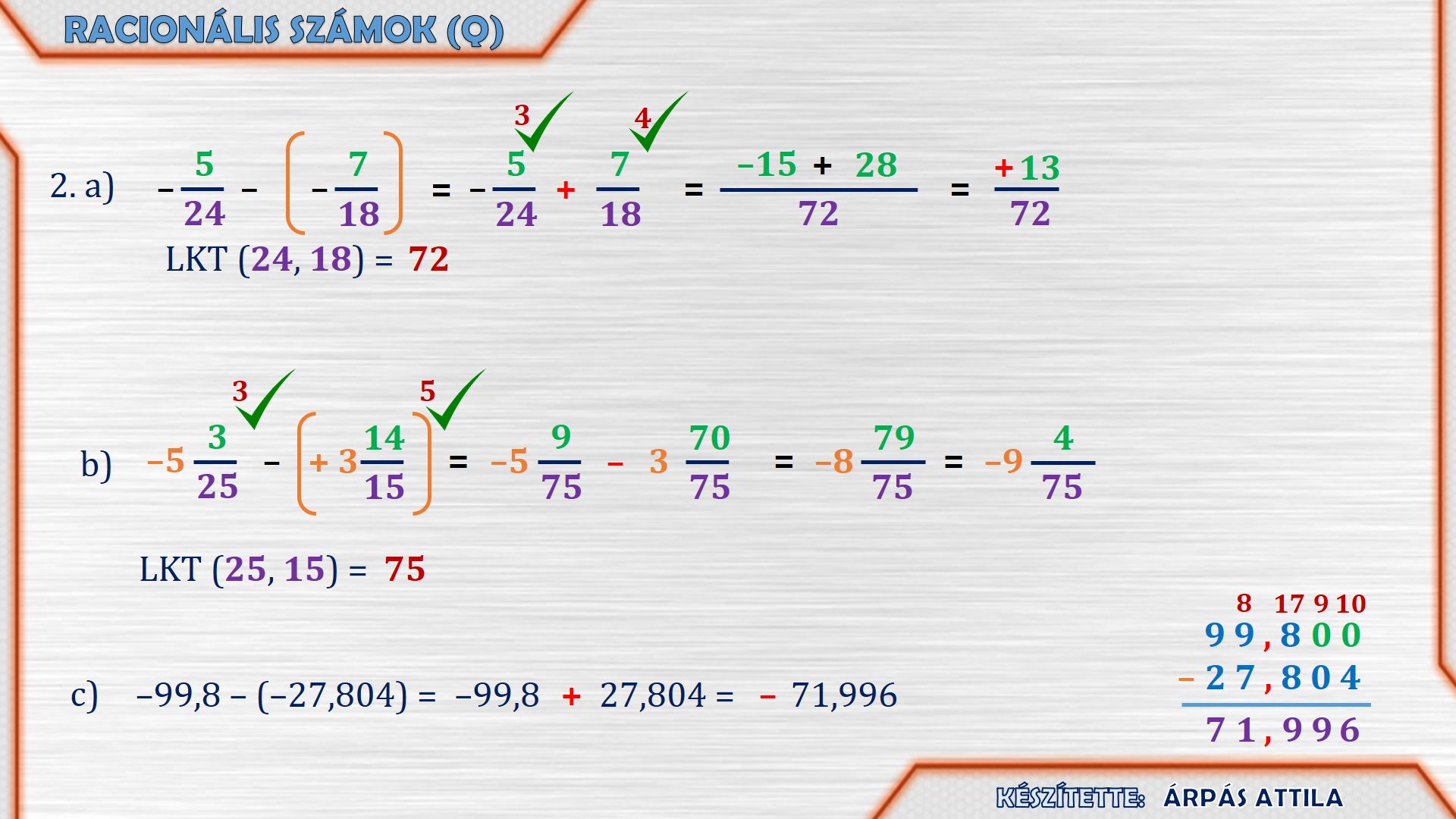 RACIONÁLIS SZÁMOK ÖSSZEADÁSA ÉS KIVONÁSA, SZÁMKIFEJEZÉSEK, EGYENLETEK, HÁROMSZÖGEK SZERKESZTÉSE
