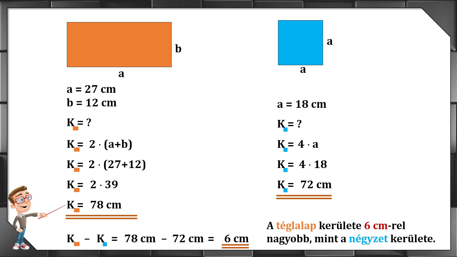 Ebben a leckében olyan négyzet, téglalap területével és kerületével kapcsolatos feladatokat oldunk meg, melyekkel a mindenapok során is találkozhatunk.