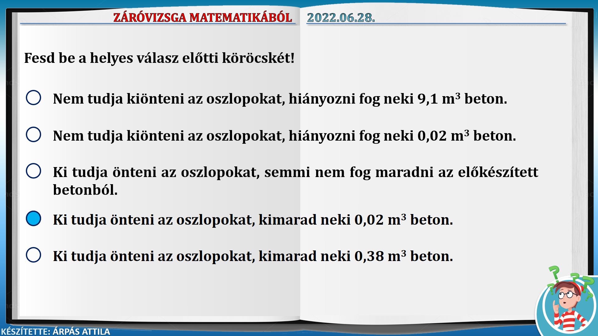 ZÁRÓVIZSGA MATEMATIKÁBÓL (2022.06.28.) – ALAPSZINT