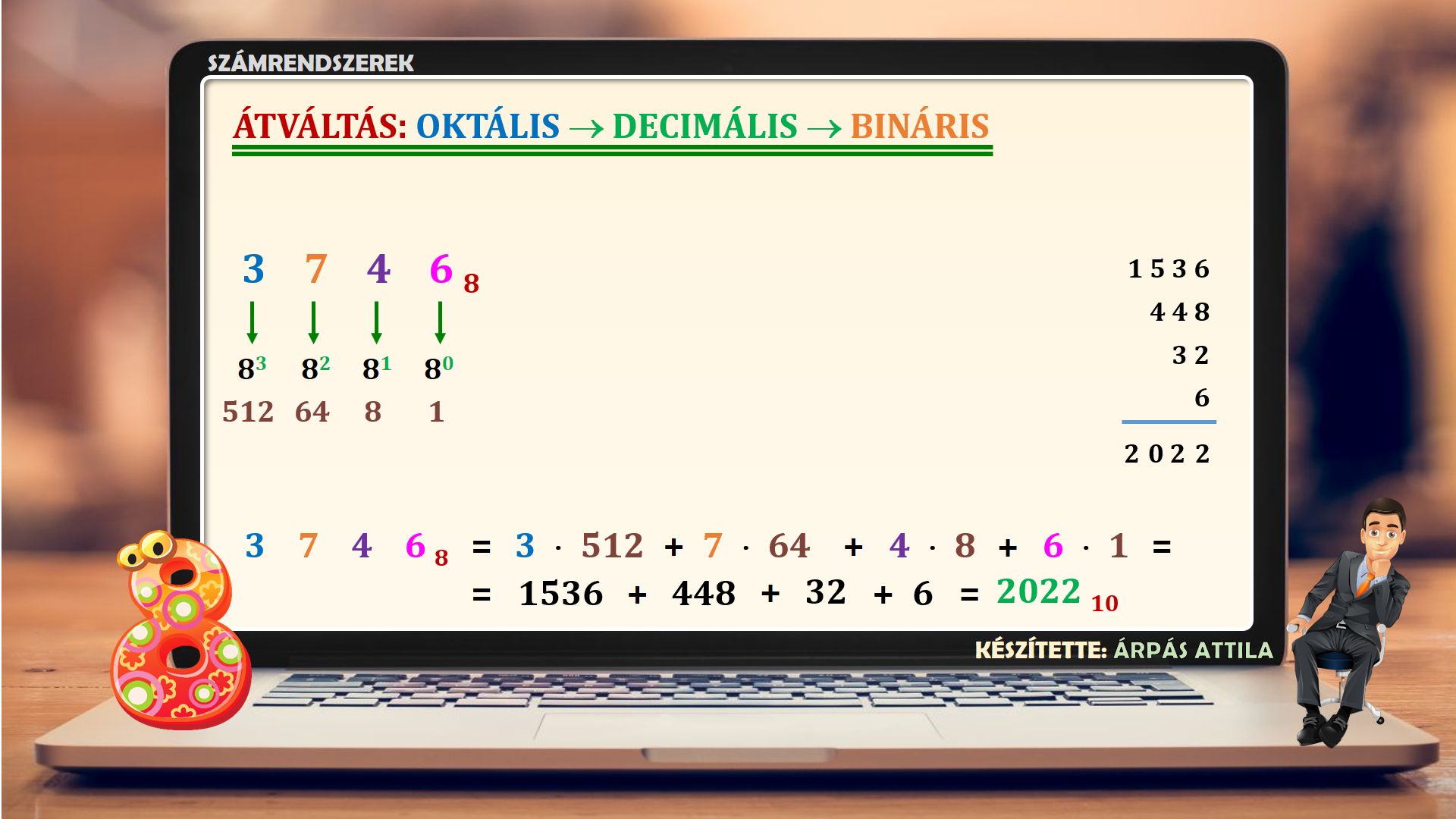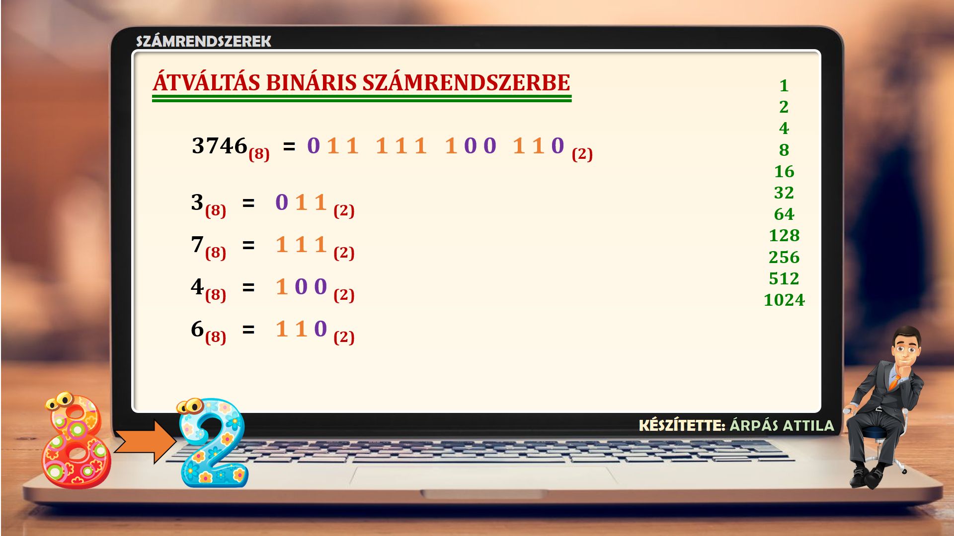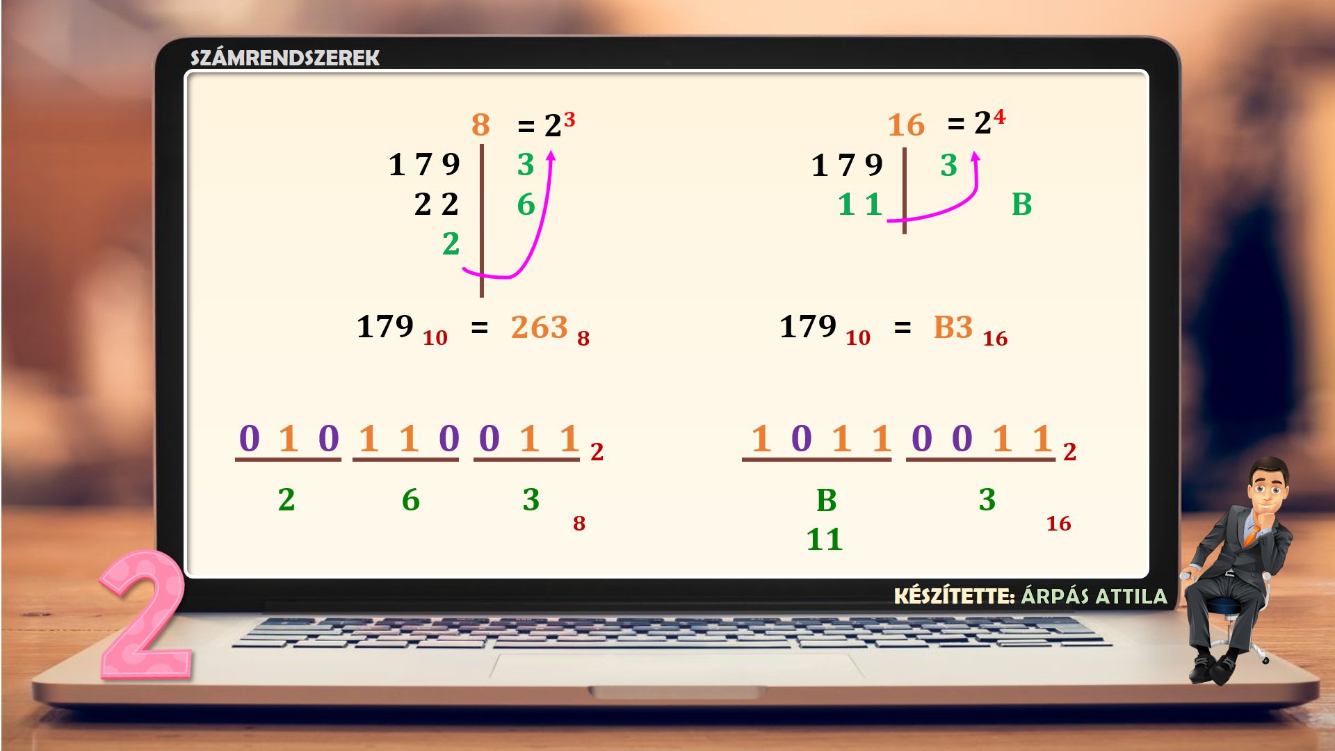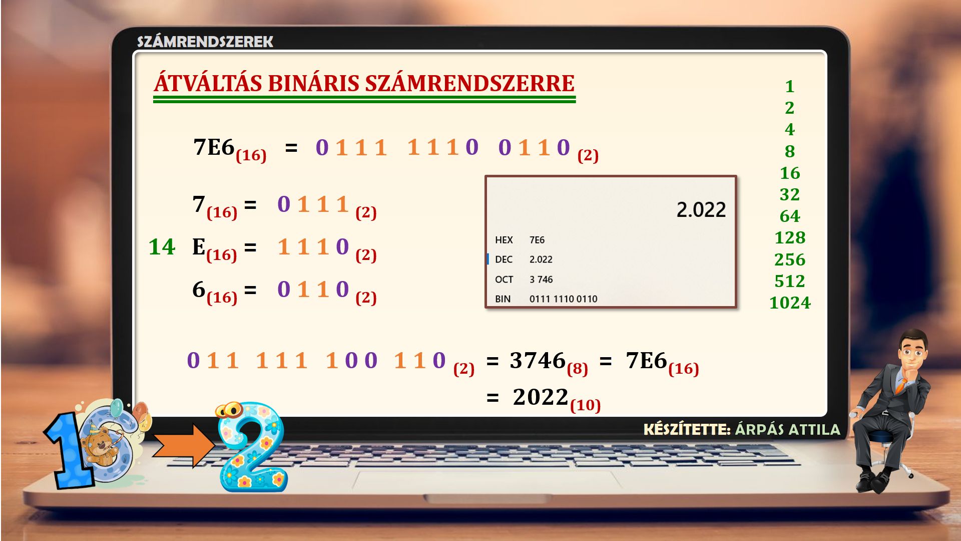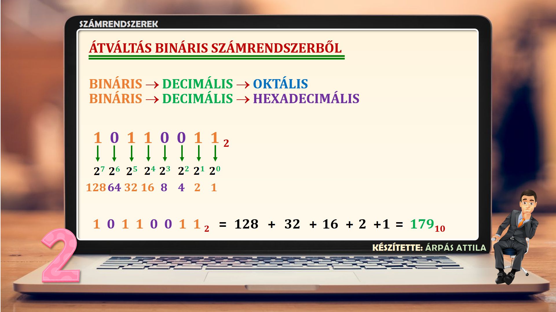 Mai leckénkben bináris számot tanulunk meg átváltani oktális és hexadecimális számmá indirekt (tízes számrendszeren keresztül) illetve direkt módszer segítségével.