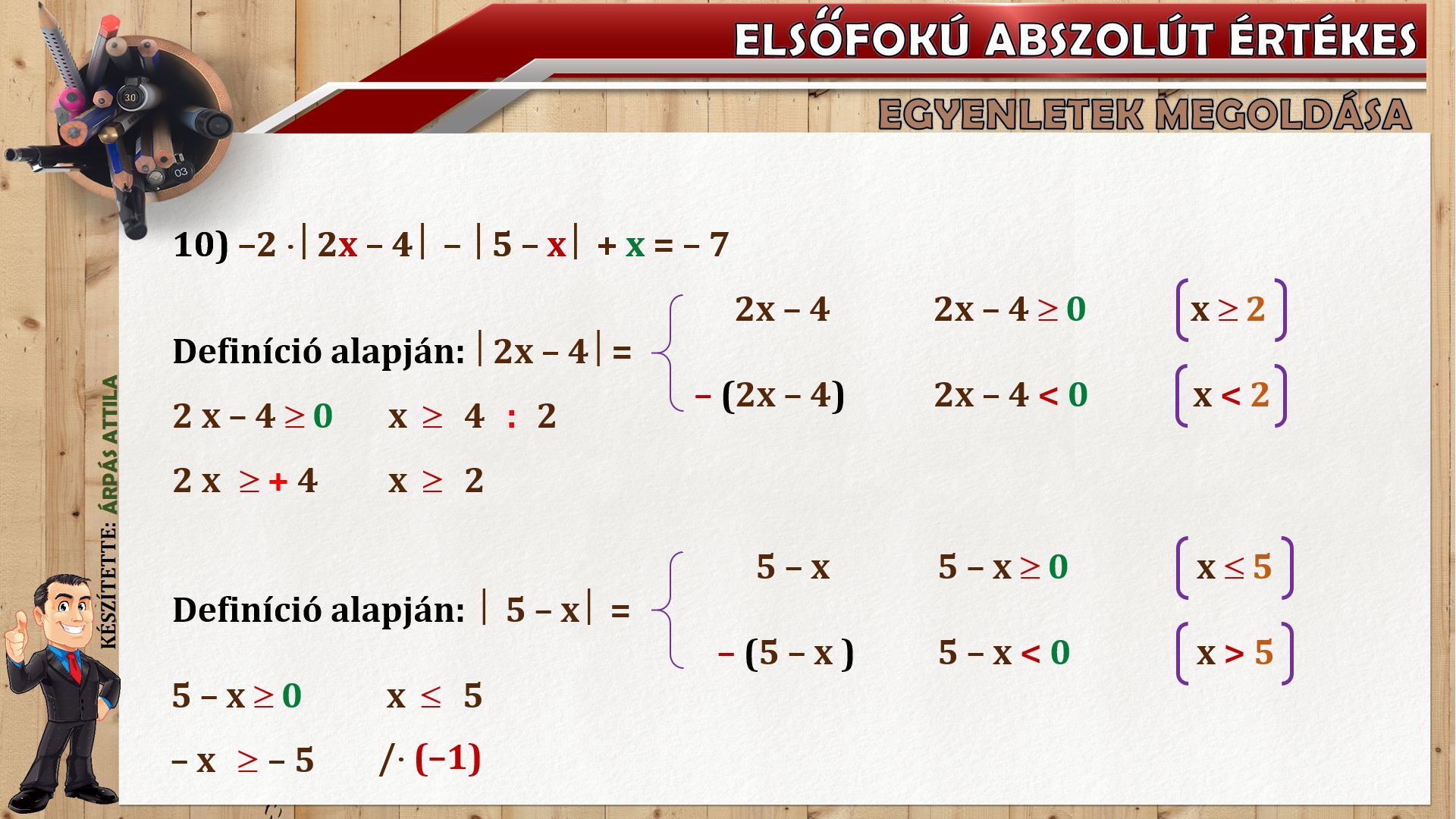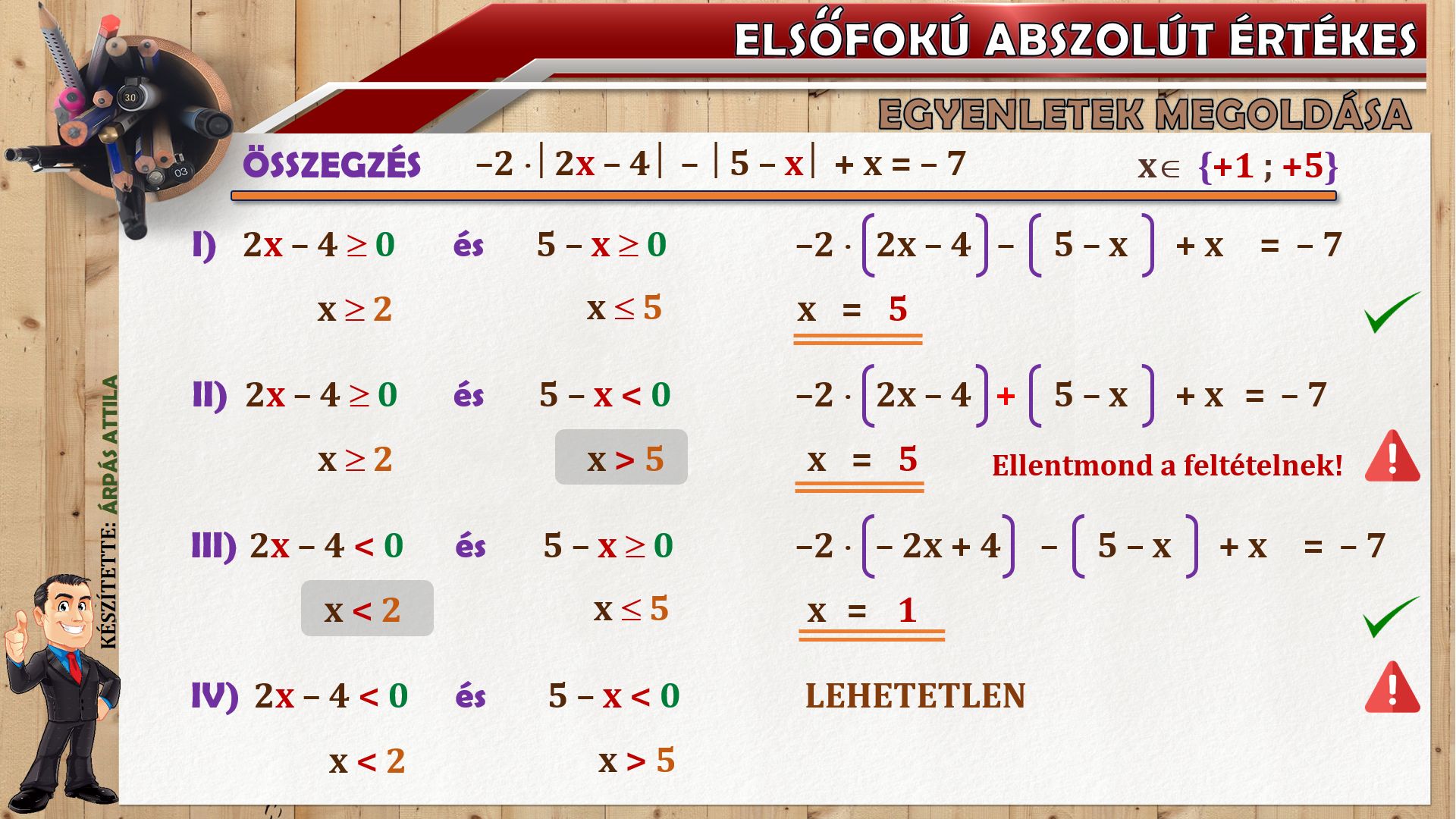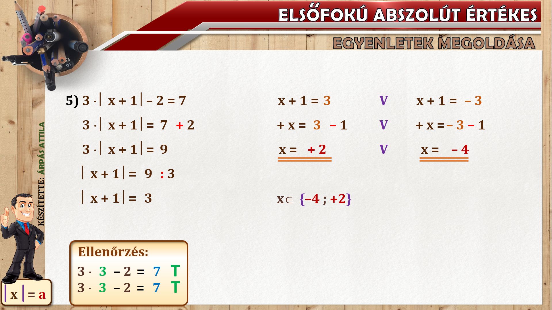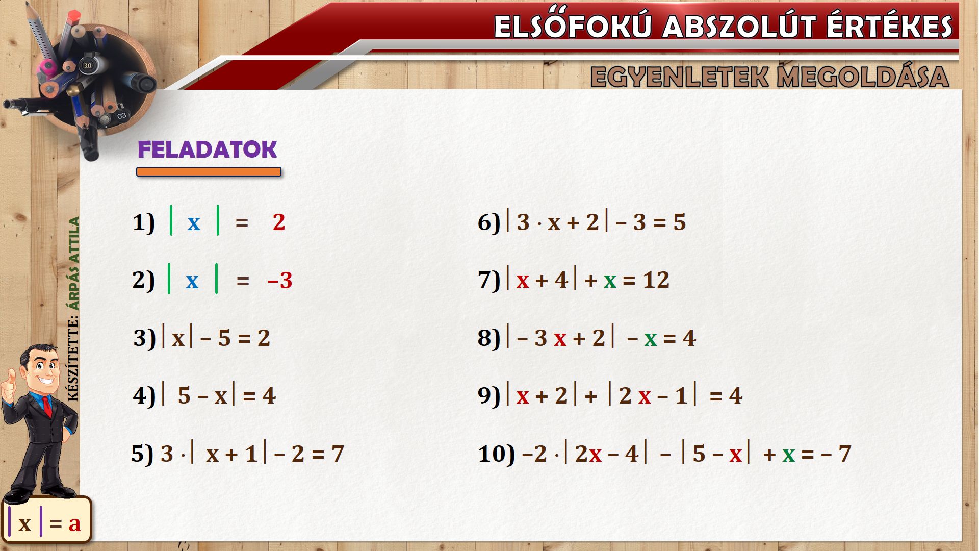 Mai leckénben olyan elsőfokú egyenletek oldunk meg, melyben abszolút érték is szerepel.