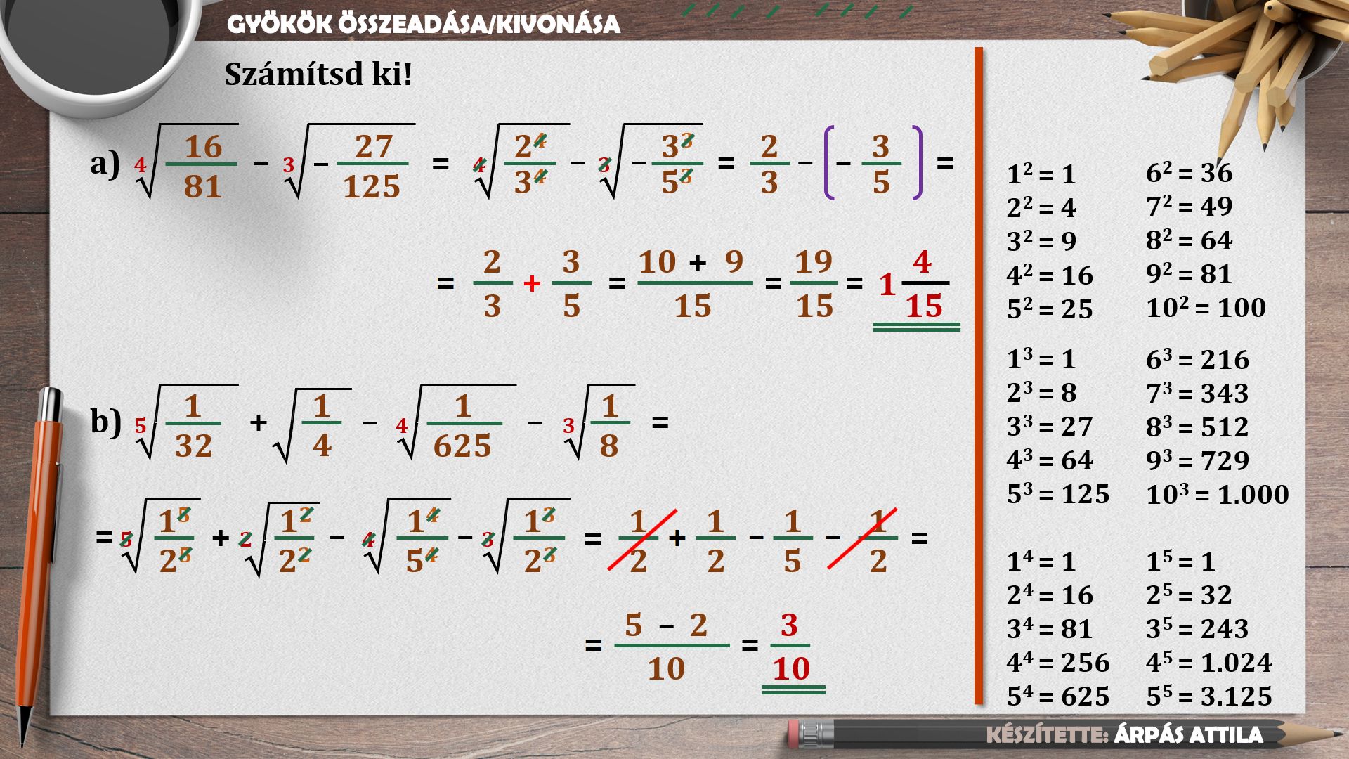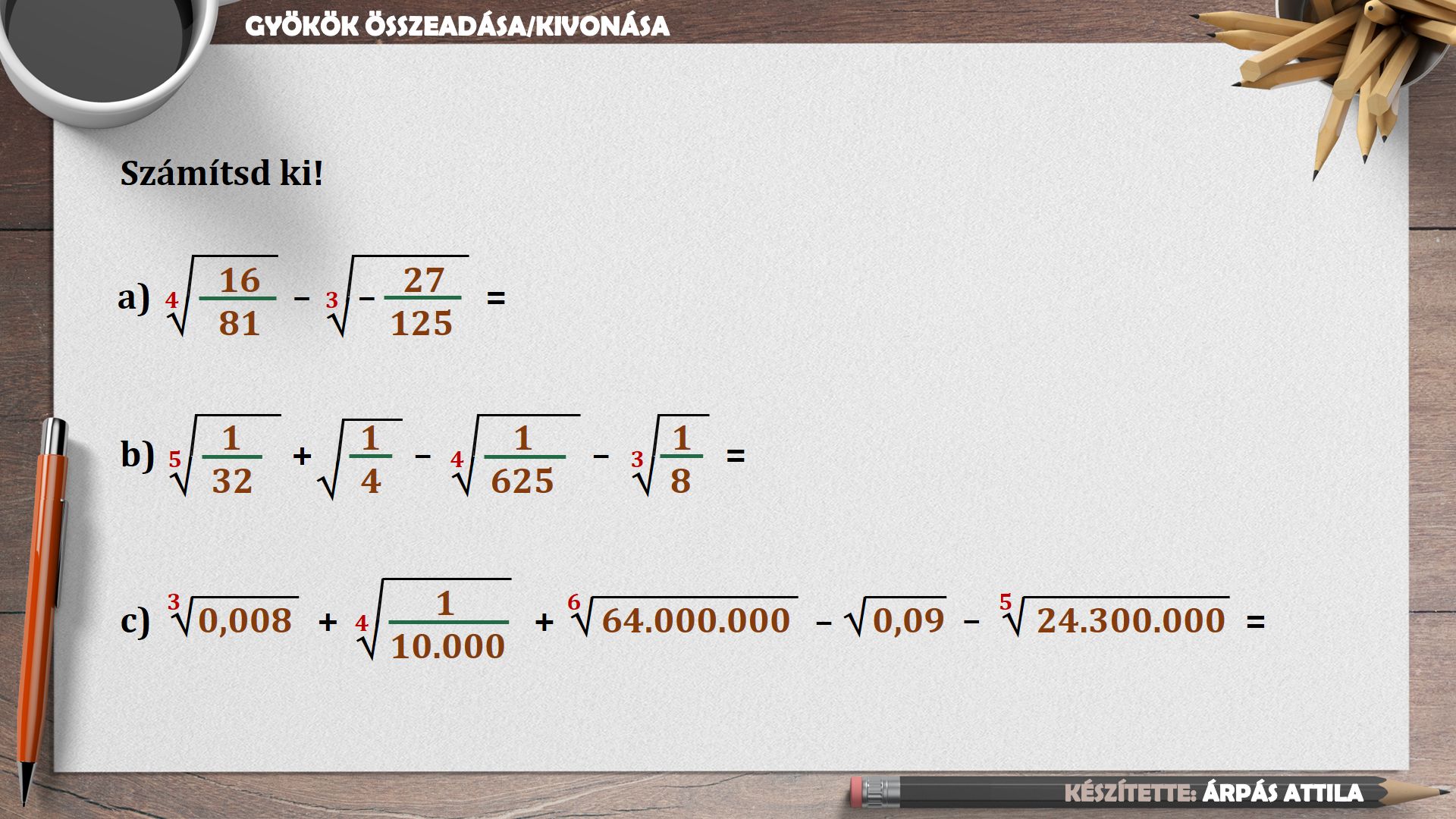MAGASABB RENDŰ GYÖKÖK ÖSSZEADÁSA ÉS KIVONÁSA