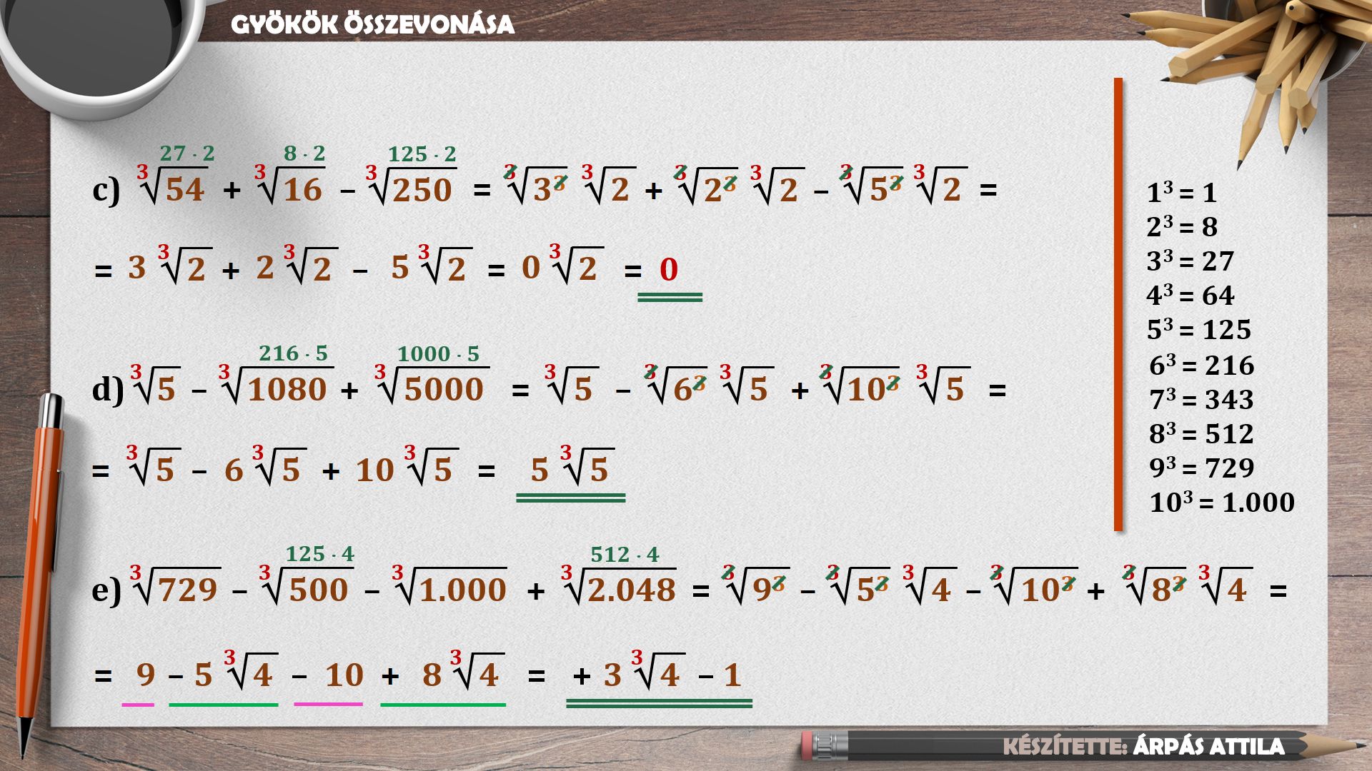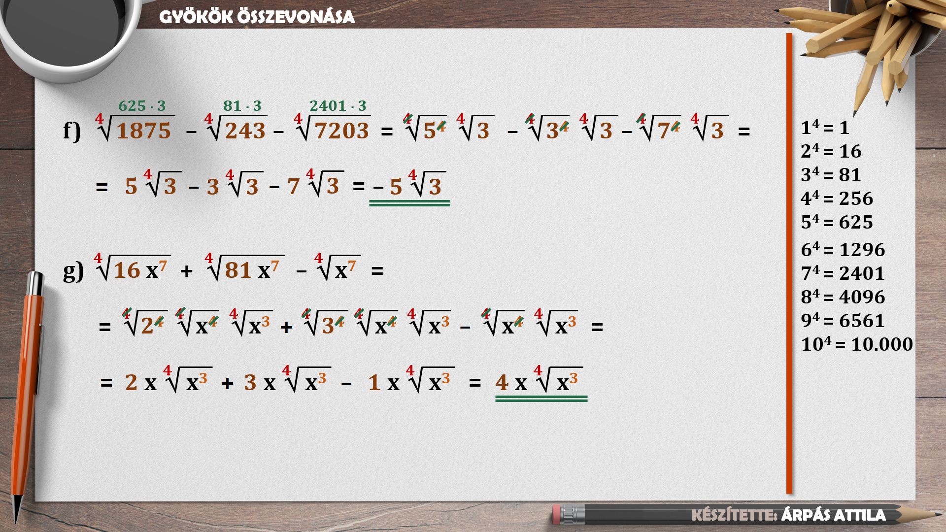 2) MŰVELETEK A (MAGASABB RENDŰ) GYÖKÖKKEL – GYÖKÖK ÖSSZEVONÁSA