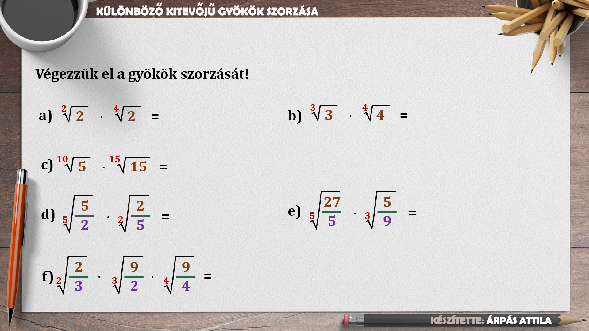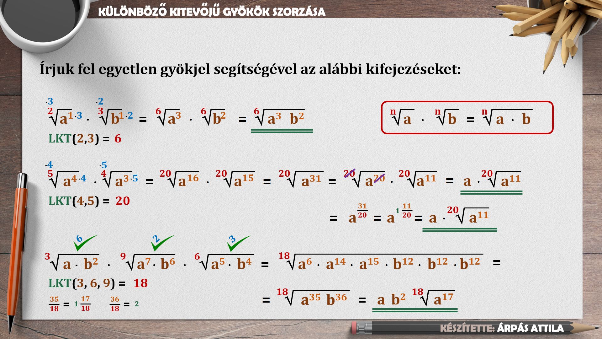 4) MŰVELETEK A (MAGASABB RENDŰ) GYÖKÖKKEL – KÜLÖNBÖZŐ KITEVŐJŰ GYÖKÖK SZORZÁSA