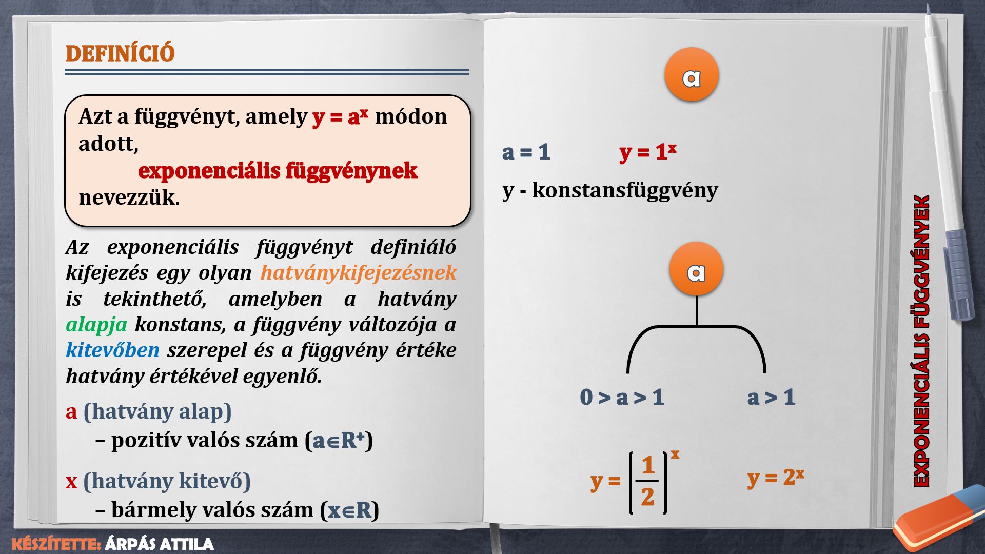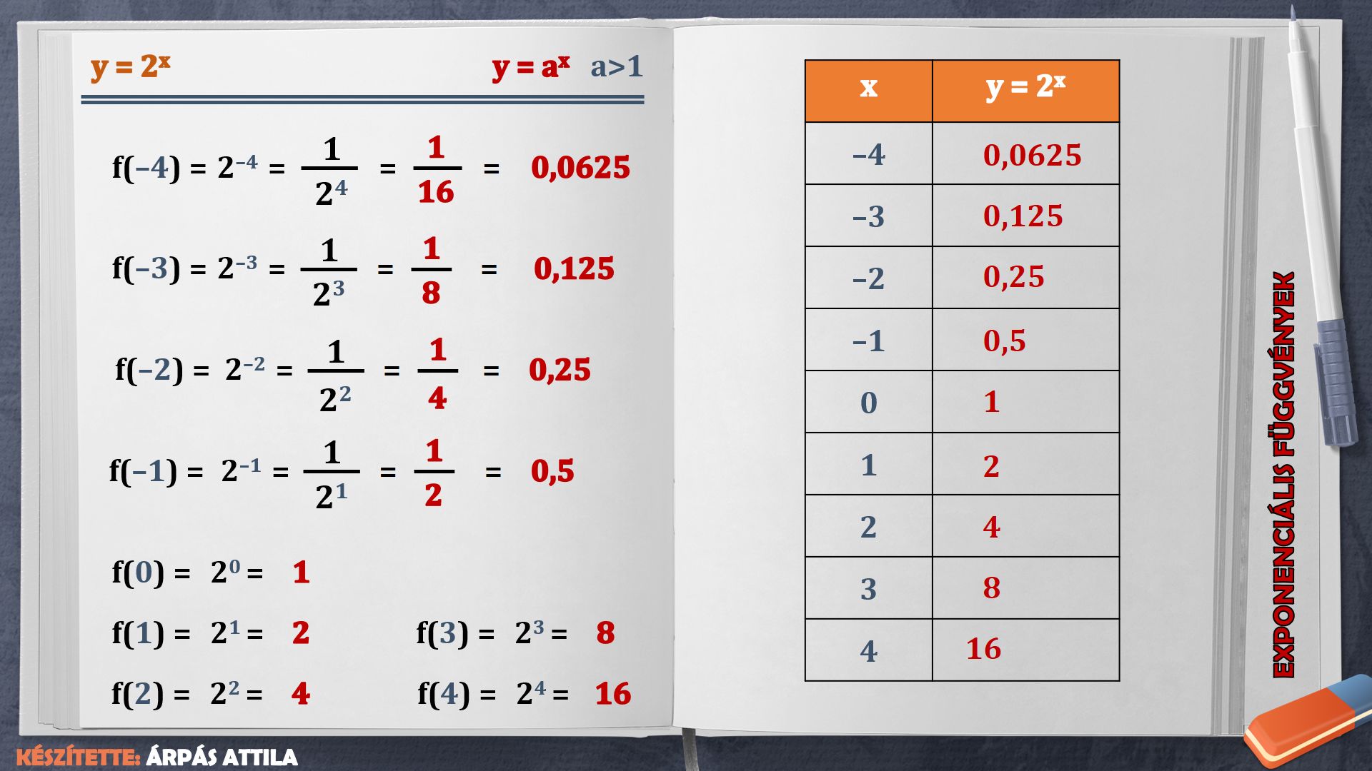 EXPONENCIÁLIS FÜGGVÉNY, EGYENLET