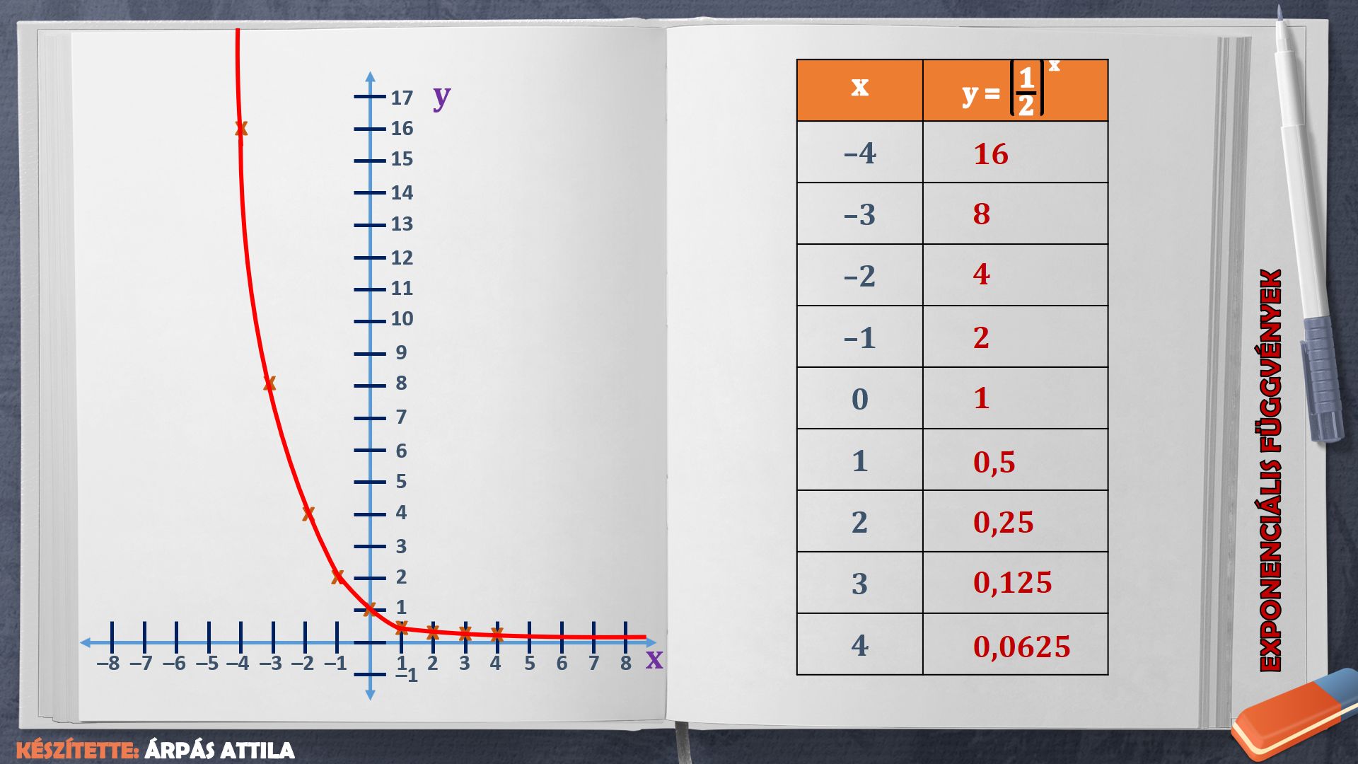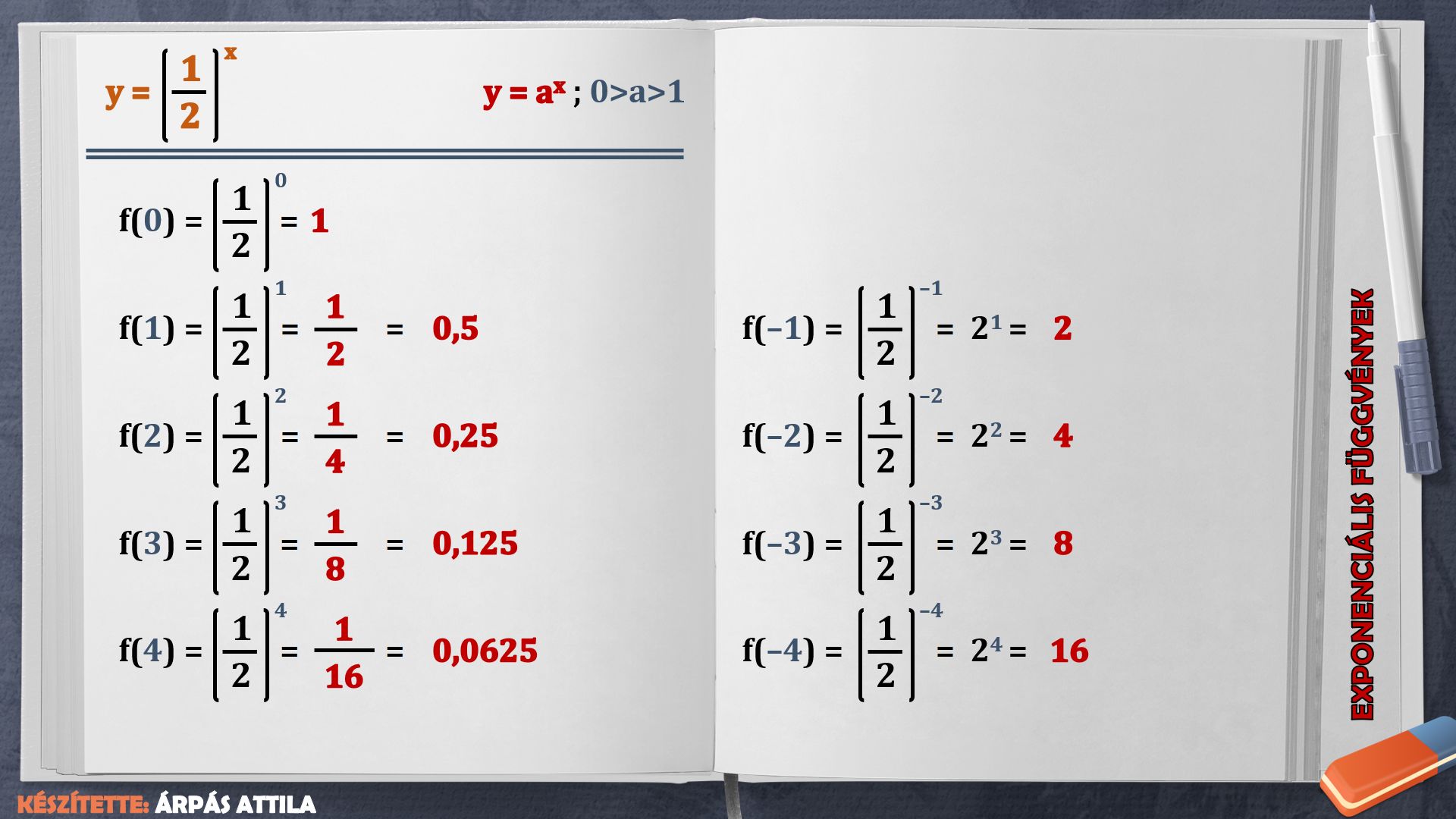 illetve az y=(½)x függvényt.