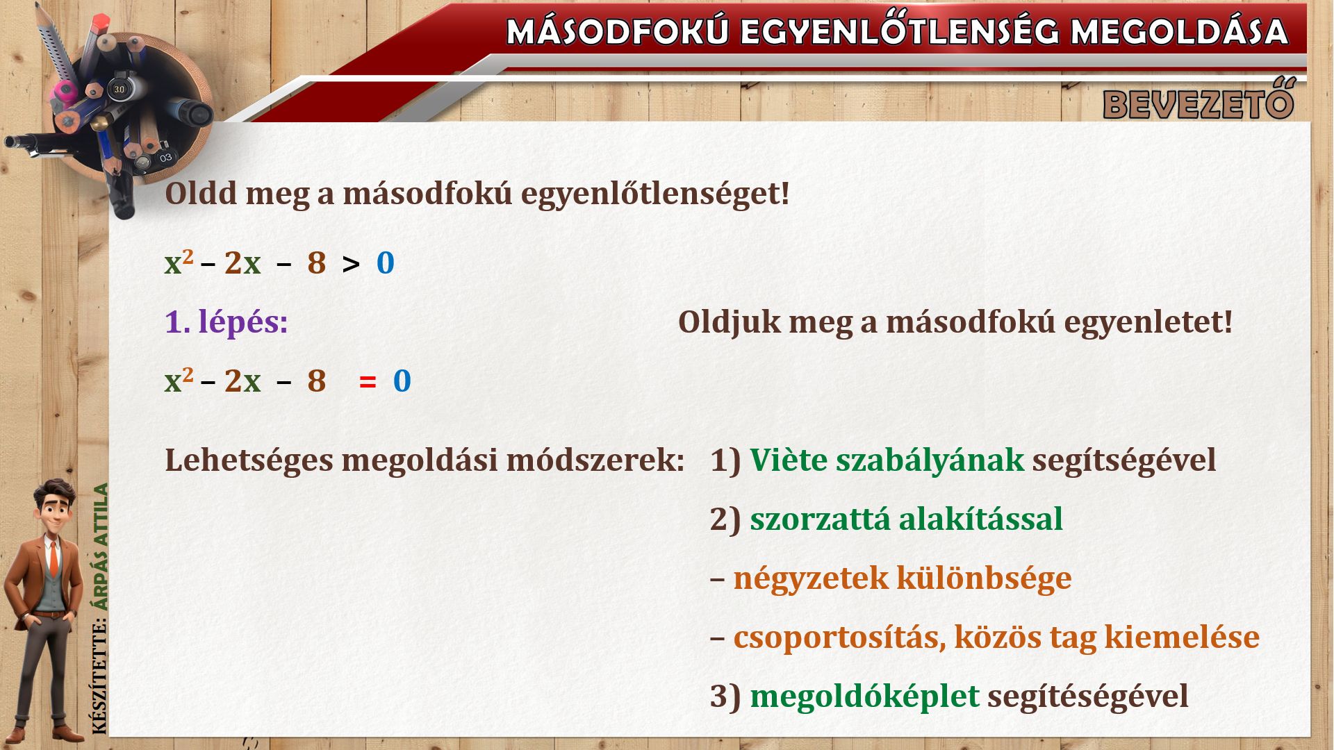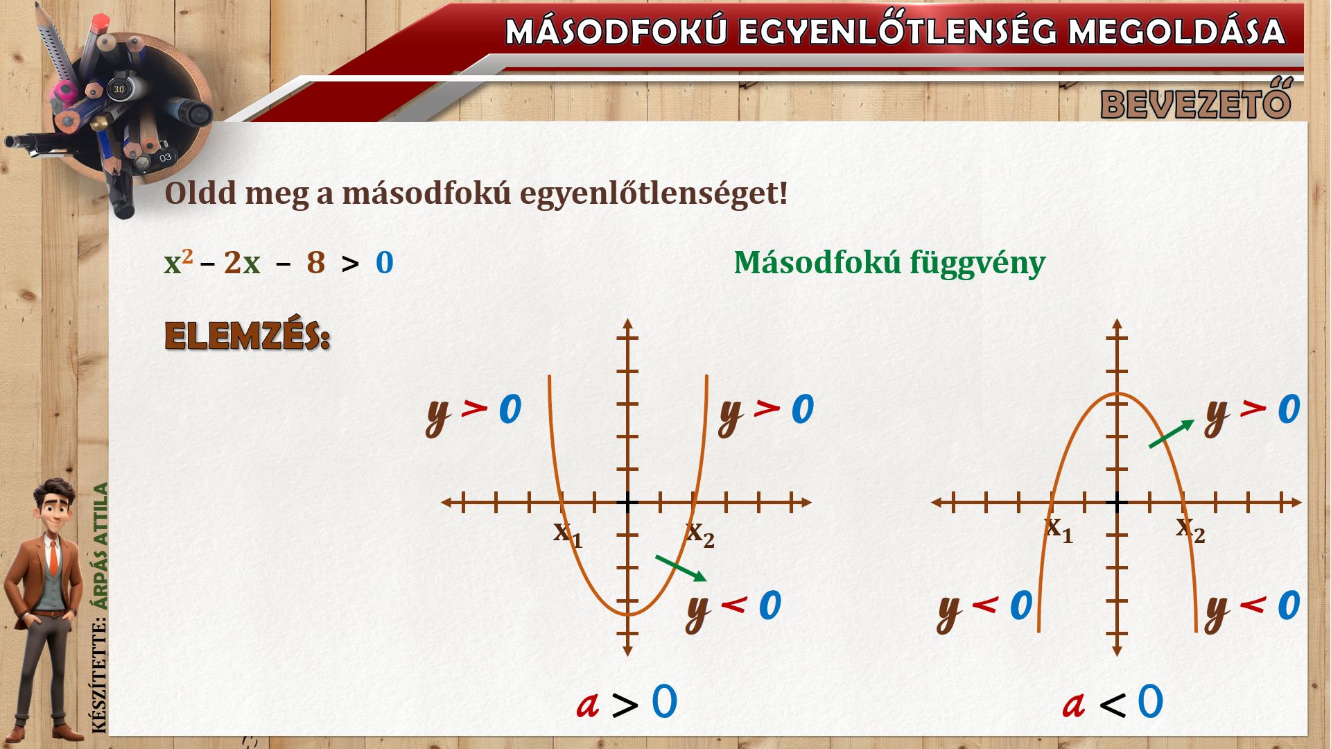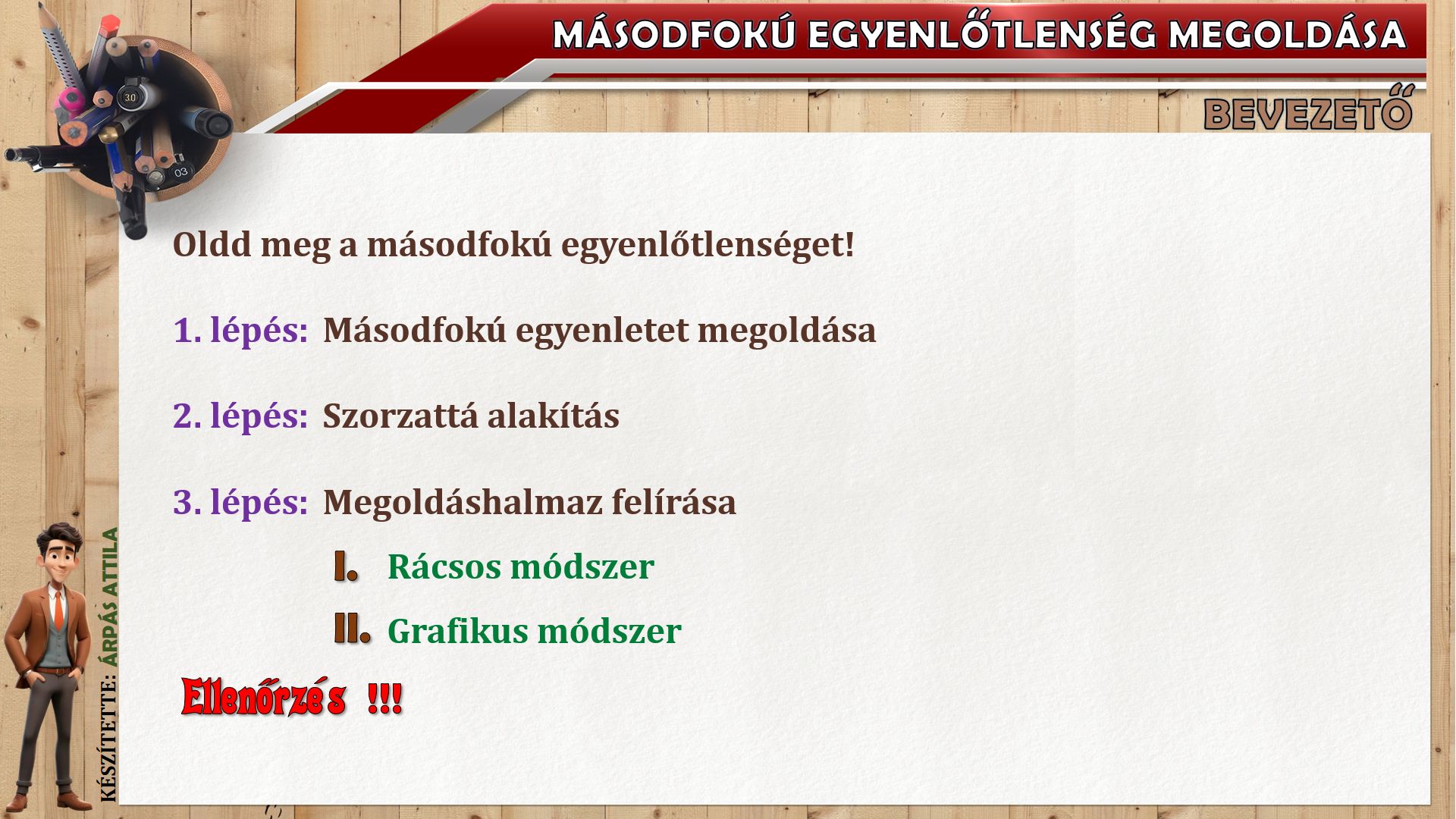 Mai leckénkben megismerkedünk azokkal a lépésekkel, melyek segítségével, bármely másodfokú egyenlőtlenséget pontosan, magabiztosan megoldhatunk.