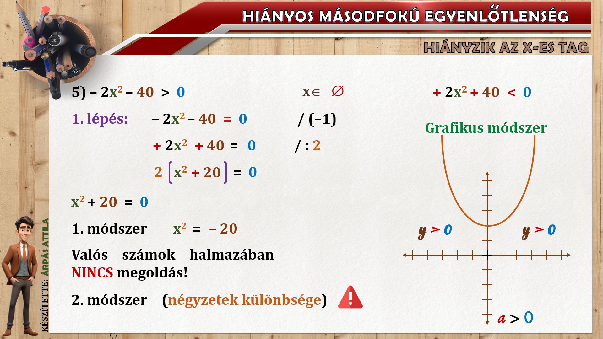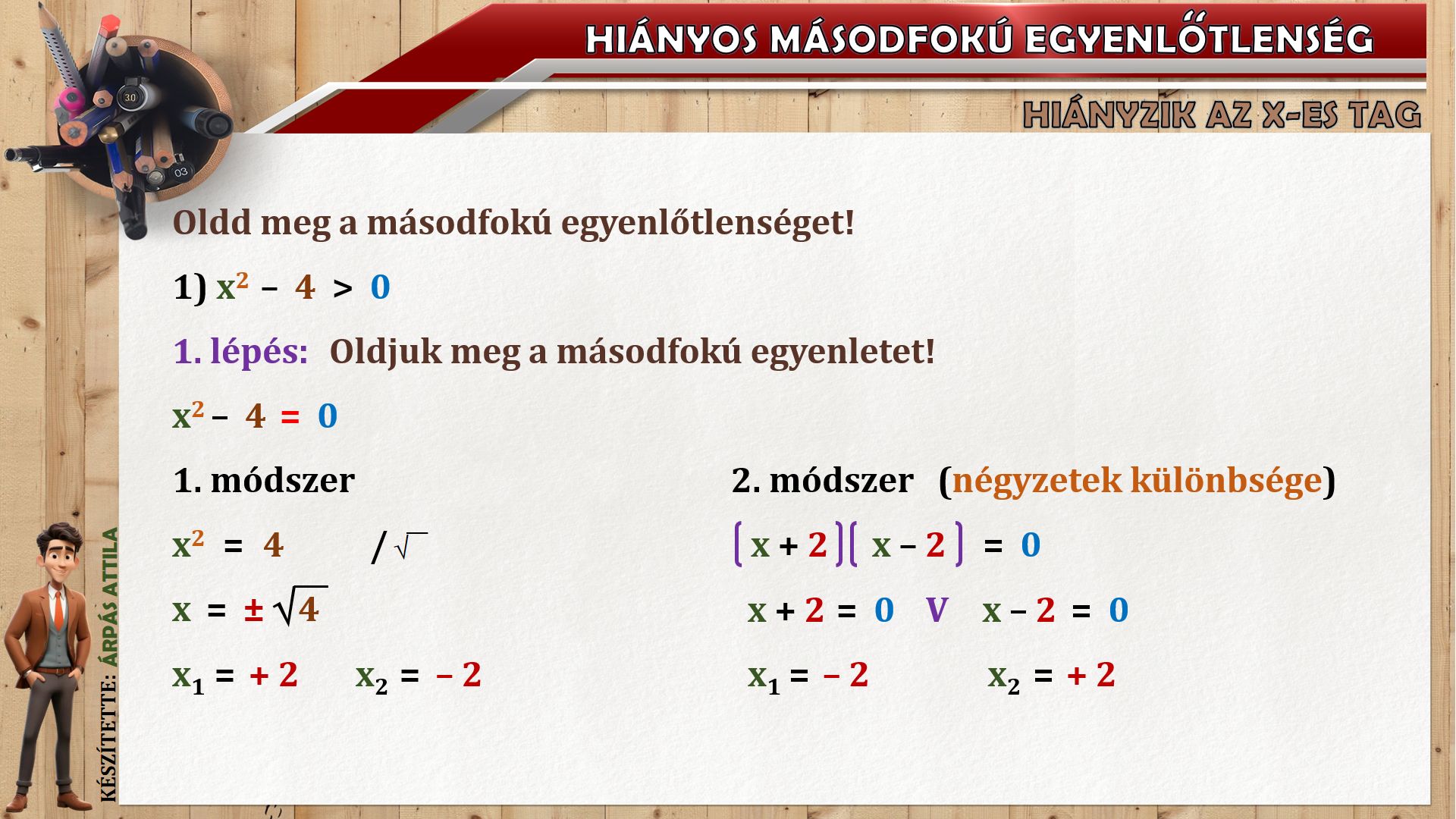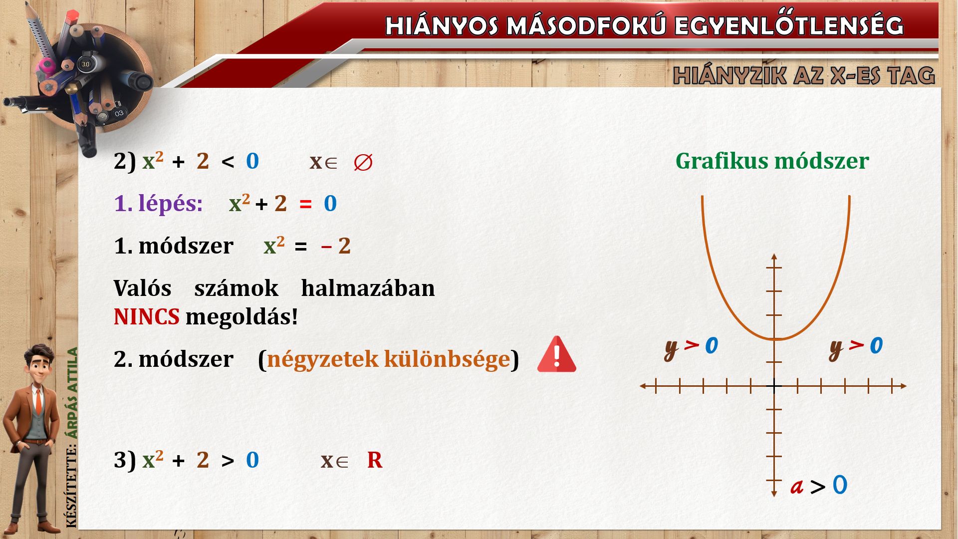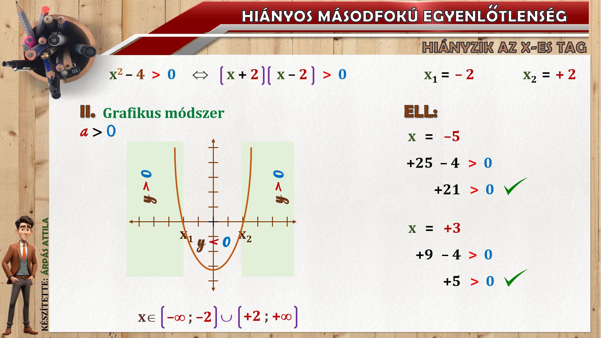 HIÁNYOS MÁSODFOKÚ EGYENLŐTLENSÉG (ax²+c ≤ ≥ 0) MEGOLDÁSA