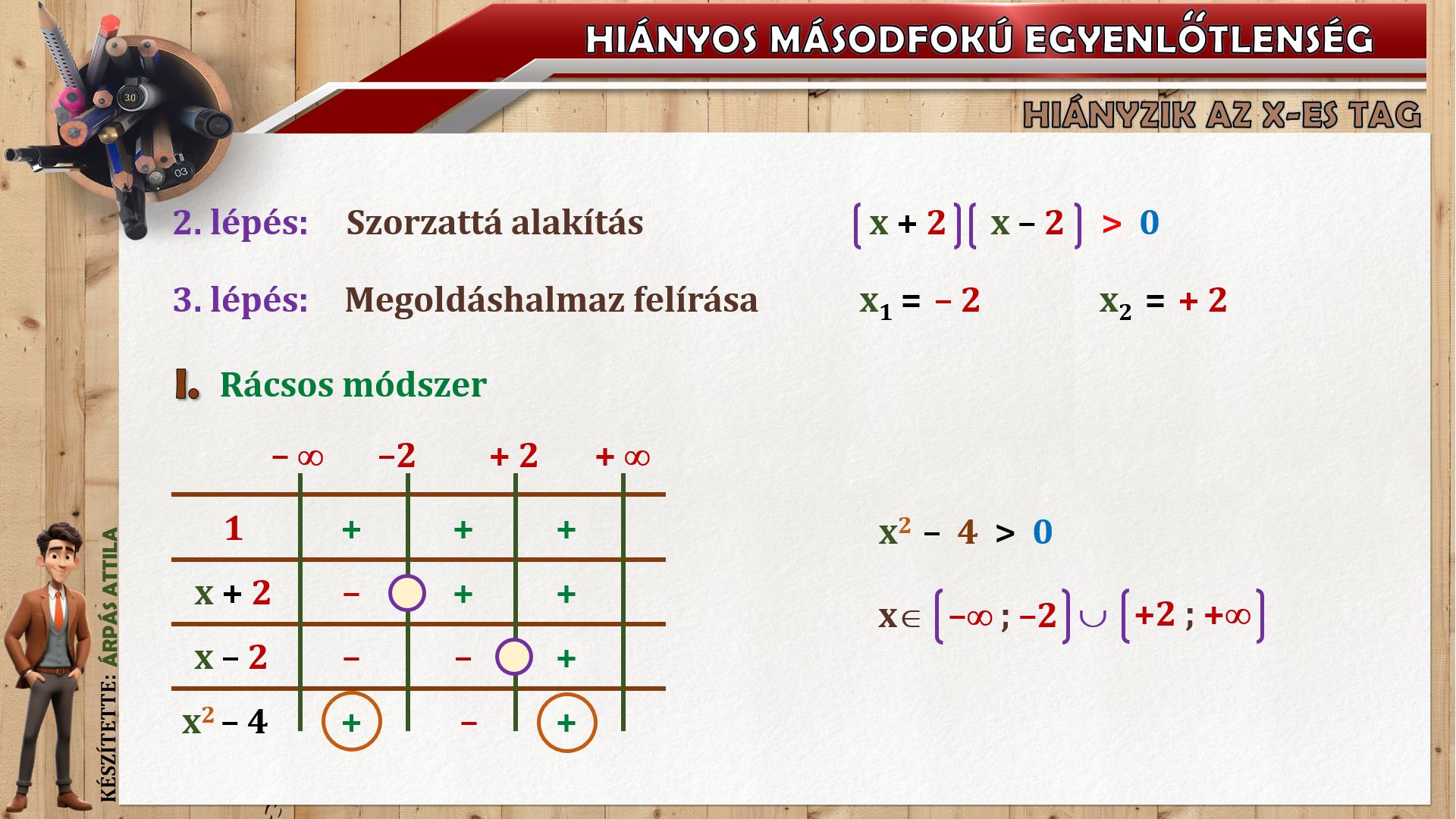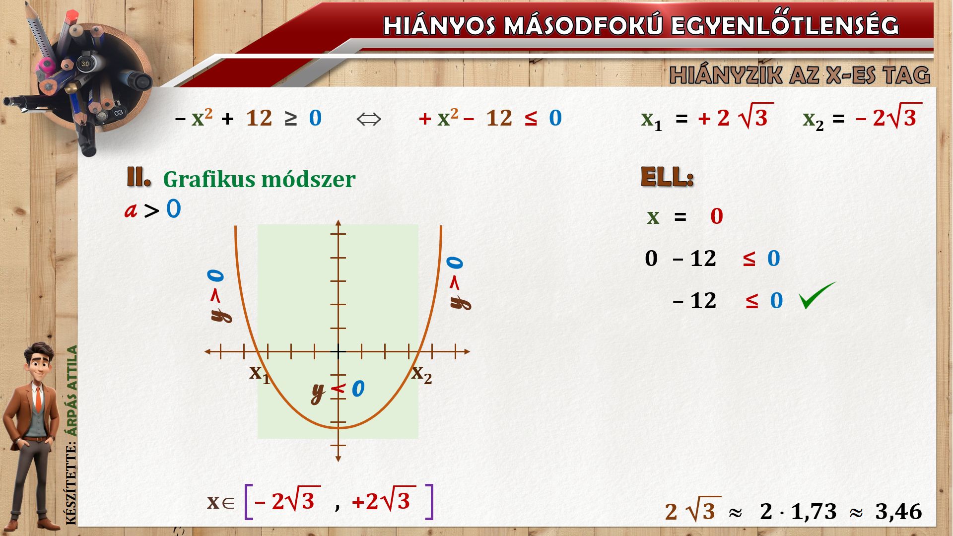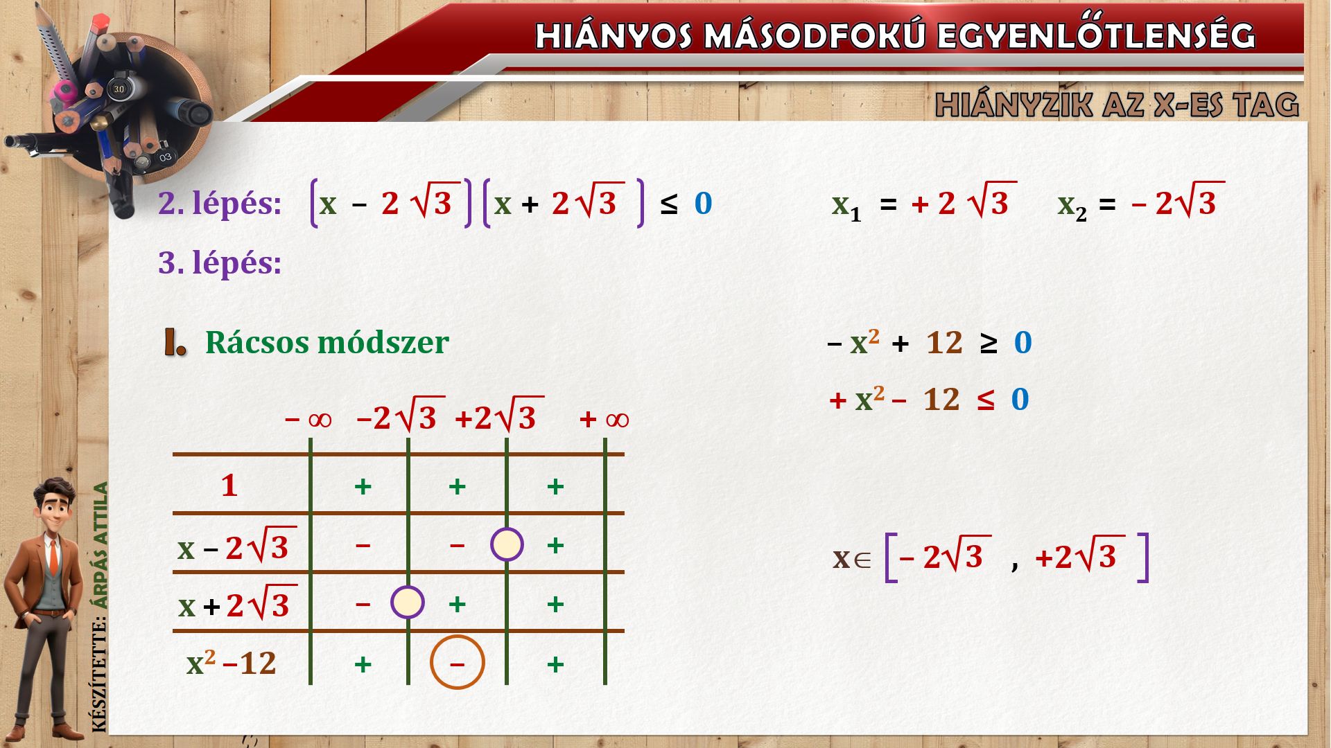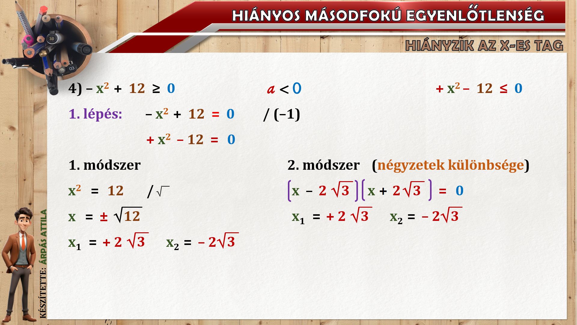 HIÁNYOS MÁSODFOKÚ EGYENLŐTLENSÉG (ax²+c ≤ ≥ 0) MEGOLDÁSA