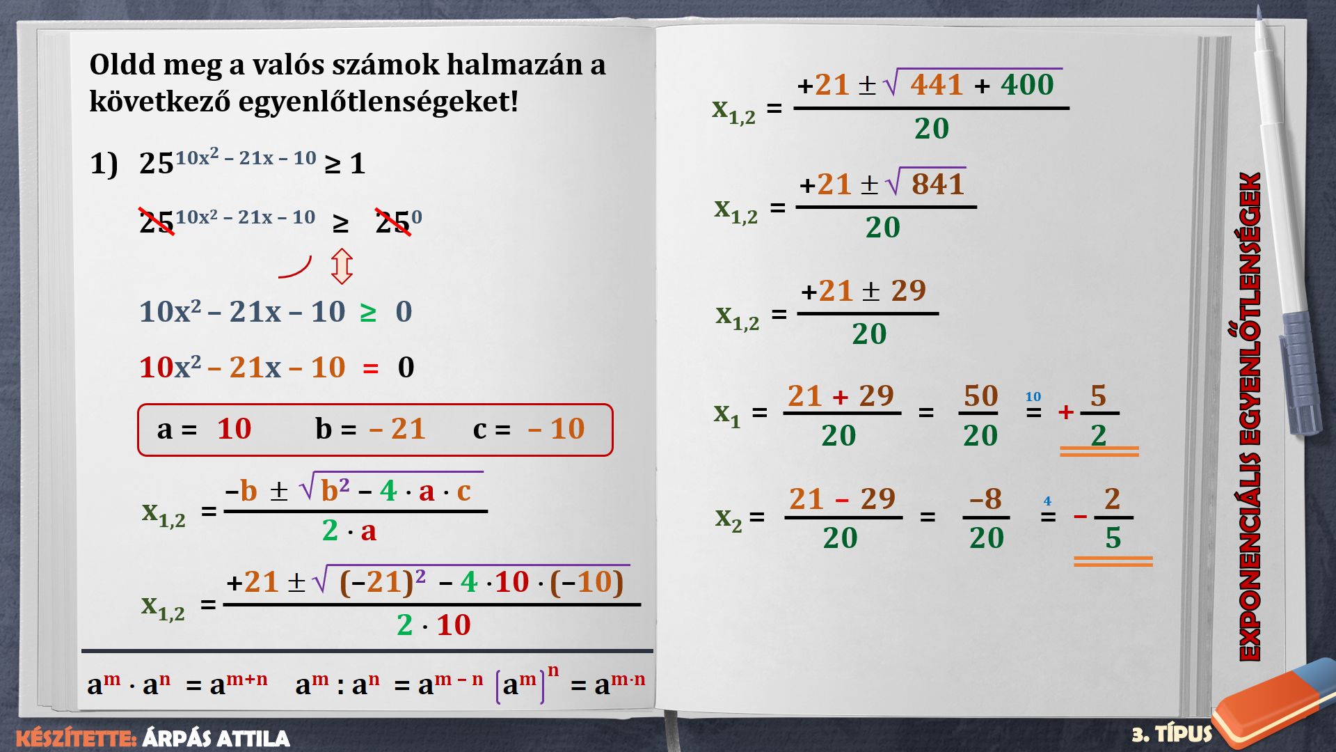 EXPONENCIÁLIS EGYENLŐTLENSÉGEK – 2. TÍPUS (3. FELADATLAP)